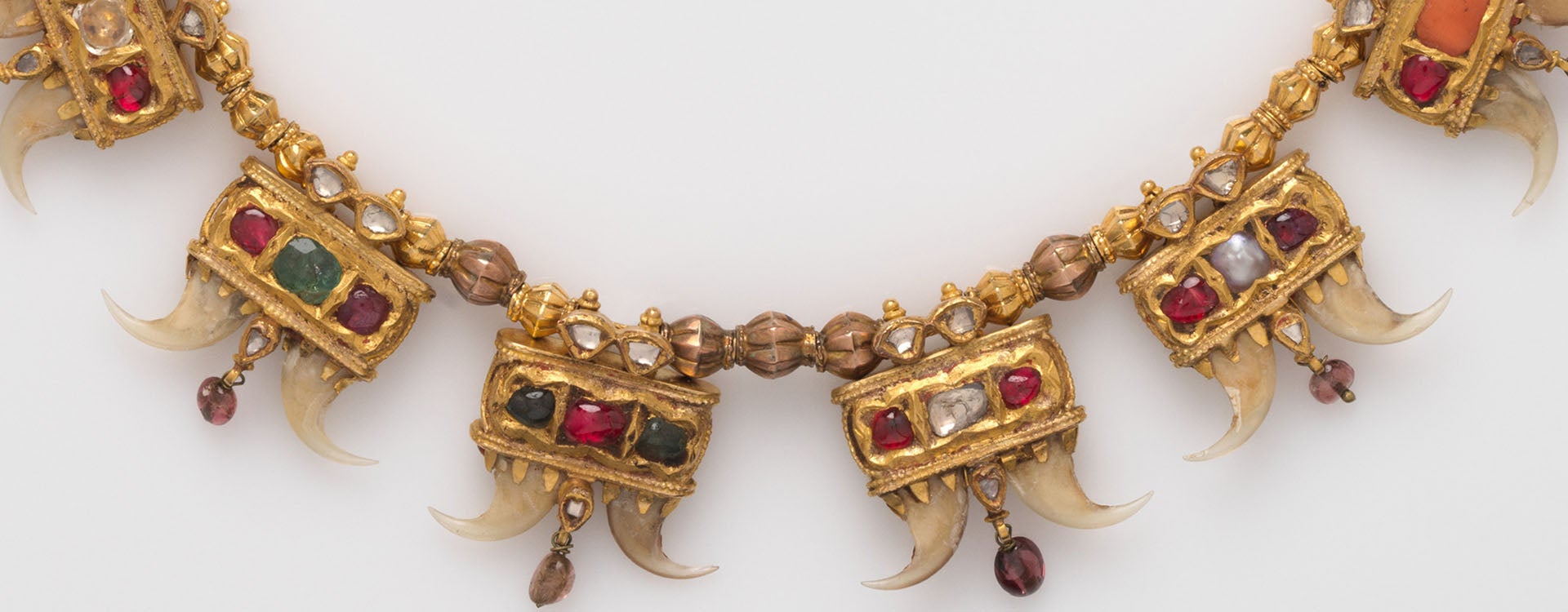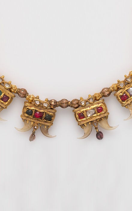 Dazzled by the appearance of the Mughal emperor Jahangir, one seventeenth-century English ambassador described him as "clothed, or rather laden, with diamonds, rubies, pearls, and other precious vanities, so great, so glorious!" Jahangir, along with his son Shah Jahan and other rulers with a connoisseur's passion for gems and luxury ornaments, birthed a jewelry tradition that continued and evolved in the courts of the Indian subcontinent well into the twentieth century.
