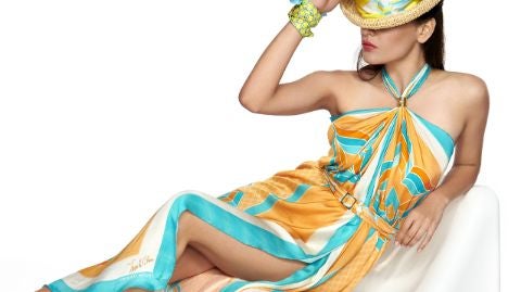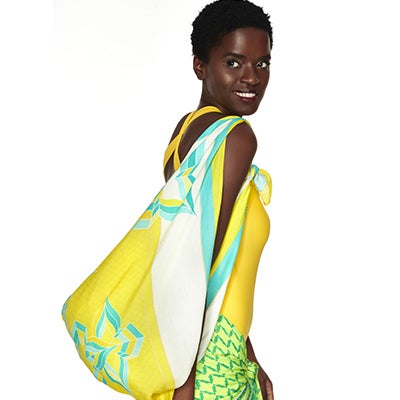 The likes of Brigitte Bardot and Sophia Loren have turned the act of relaxing on a deck chair by the sea into a beautiful art form. For your very own moment in the sun hit the beach in your favourite bathing suit equipped with nothing but a scarf and we’ll show you how to turn it into a coverup and more. To start fully open the scarf and hold it behind you. Now grab the top ends and bring them to the front. Cross the ends at your collarbone and knot them at the nape of the neck to make a halter. If you’re hitting the club for some cocktails after, use a blingy clasp to fasten the scarf ends together where they cross in the front. Cinch at the waist with a skinny belt for added oomph.