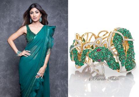 Shilpa Shetty is all sinuous grace in our emerald serpent cuff