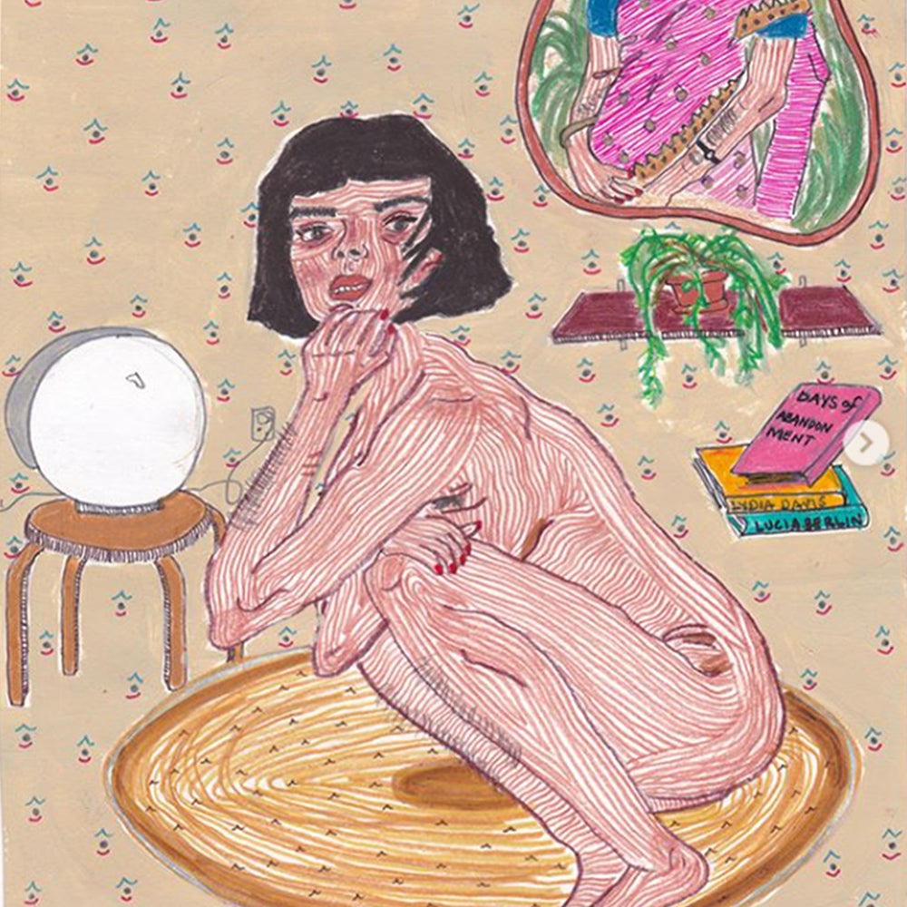 The Brooklyn-based artist Riya Hamid, who originally hails from Bangladesh, uses art as a means to embrace her cultural identity and have uncomfortable conversations about mental illness, suicide, abuse, gender norms, body image and religion. Her portraits, drawn with pencils and ink on paper, incorporate motifs from the Bengali household she grew up in along with contrasting elements that reinforce her now American identity. Hamid has also modelled for H&M and Lonely Lingerie and was featured in Vogue’s list of 100 inspiring people.