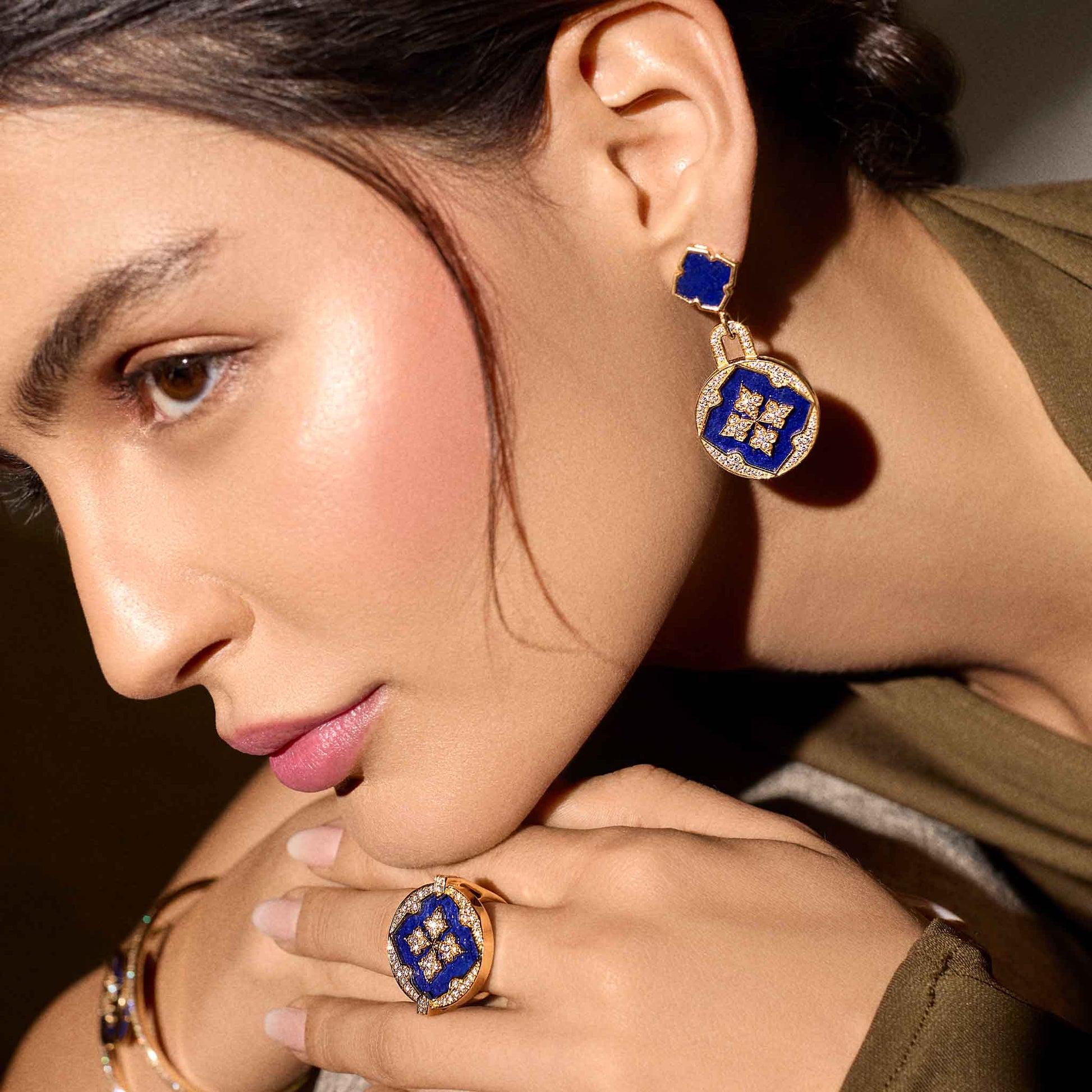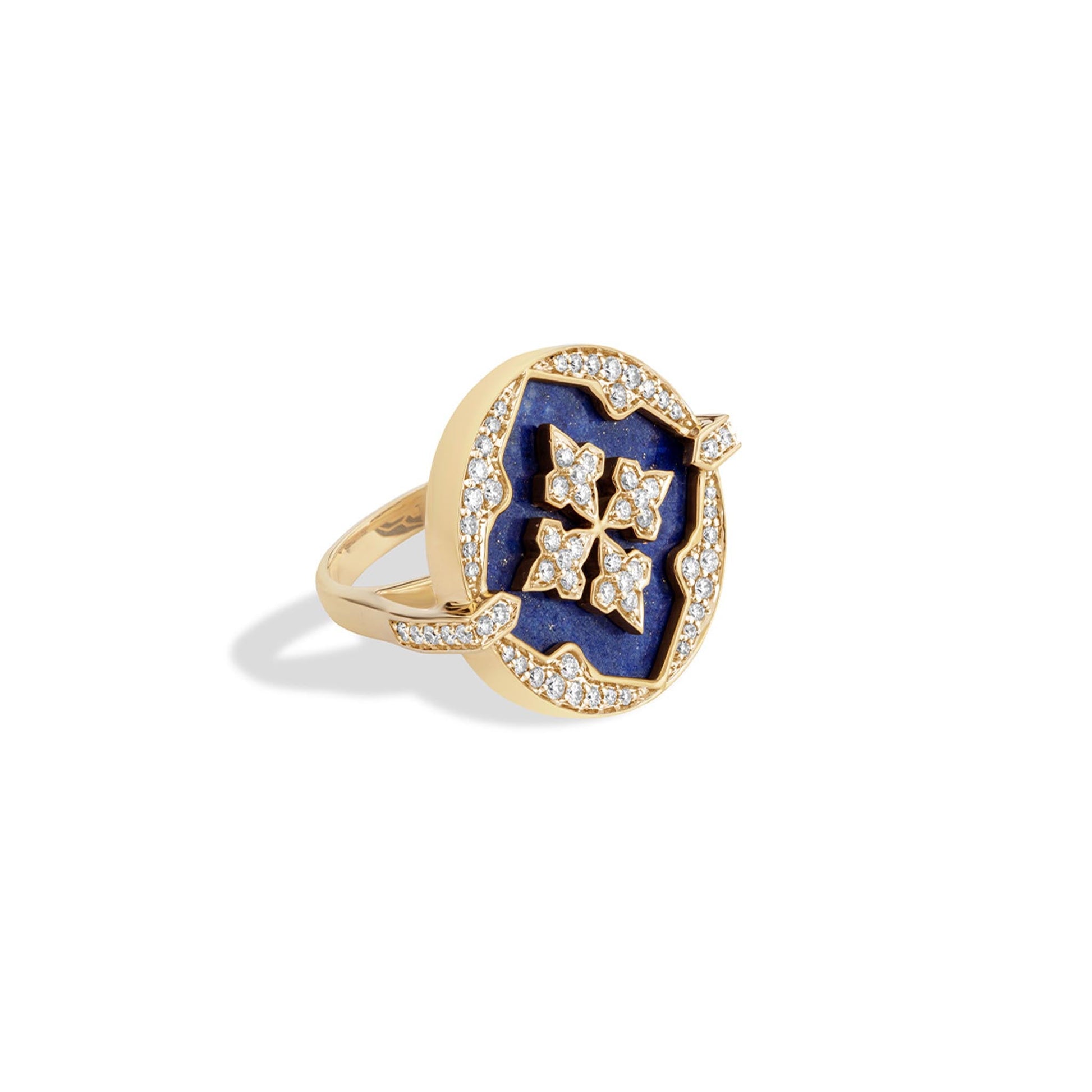 The Deep Blue Ring channels the calming pulse of flowing water through the deep hues of Lapis Lazuli. With its circular silhouette in 18K gold and natural diamonds, this ring echoes the quiet strength of tides and emotion—for the woman who moves with grace and a deep sense of self.