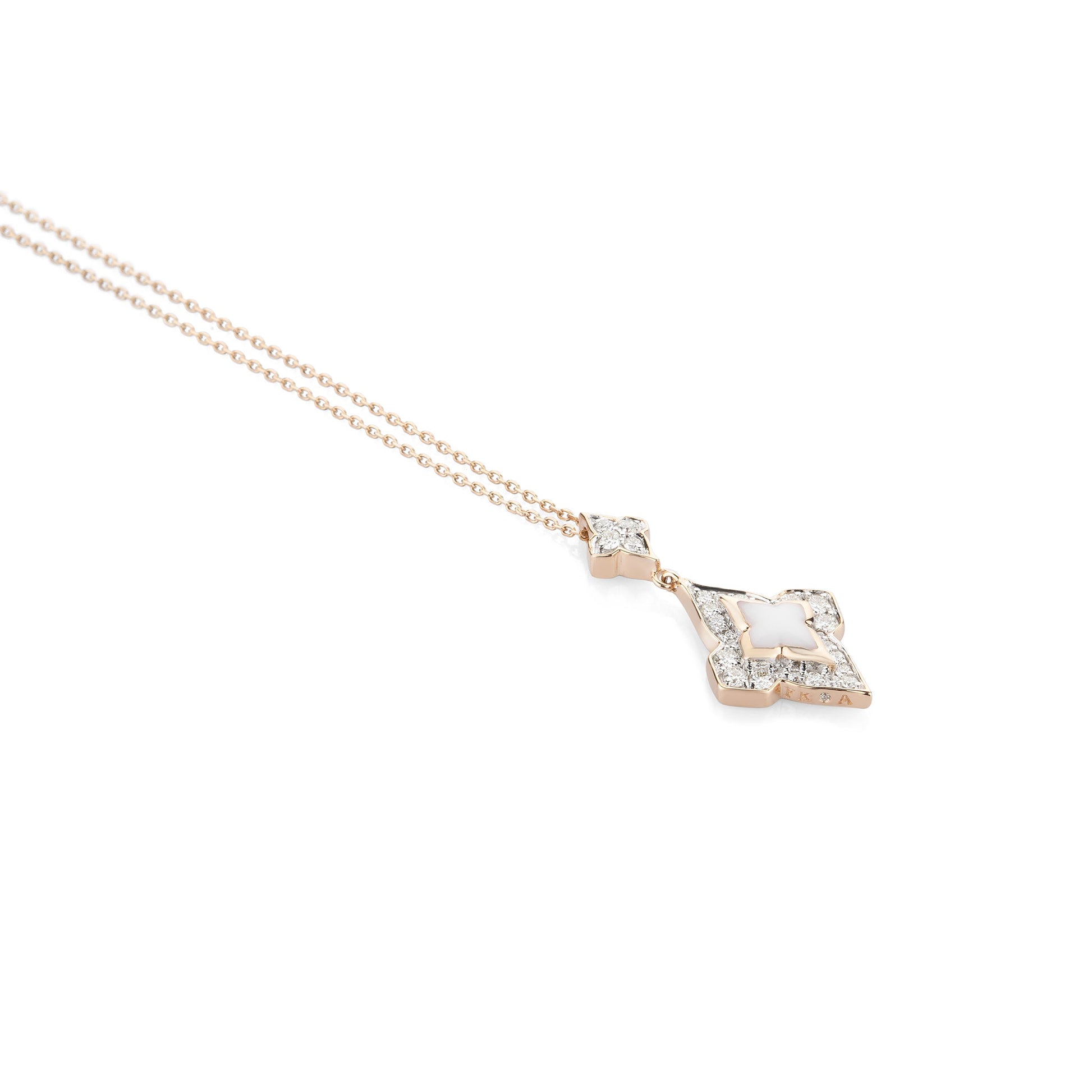 Designed in 18kt gold, brilliant diamonds and white ceramic, this classic Aayat Necklace will add a touch of sparkle to your blessed day.