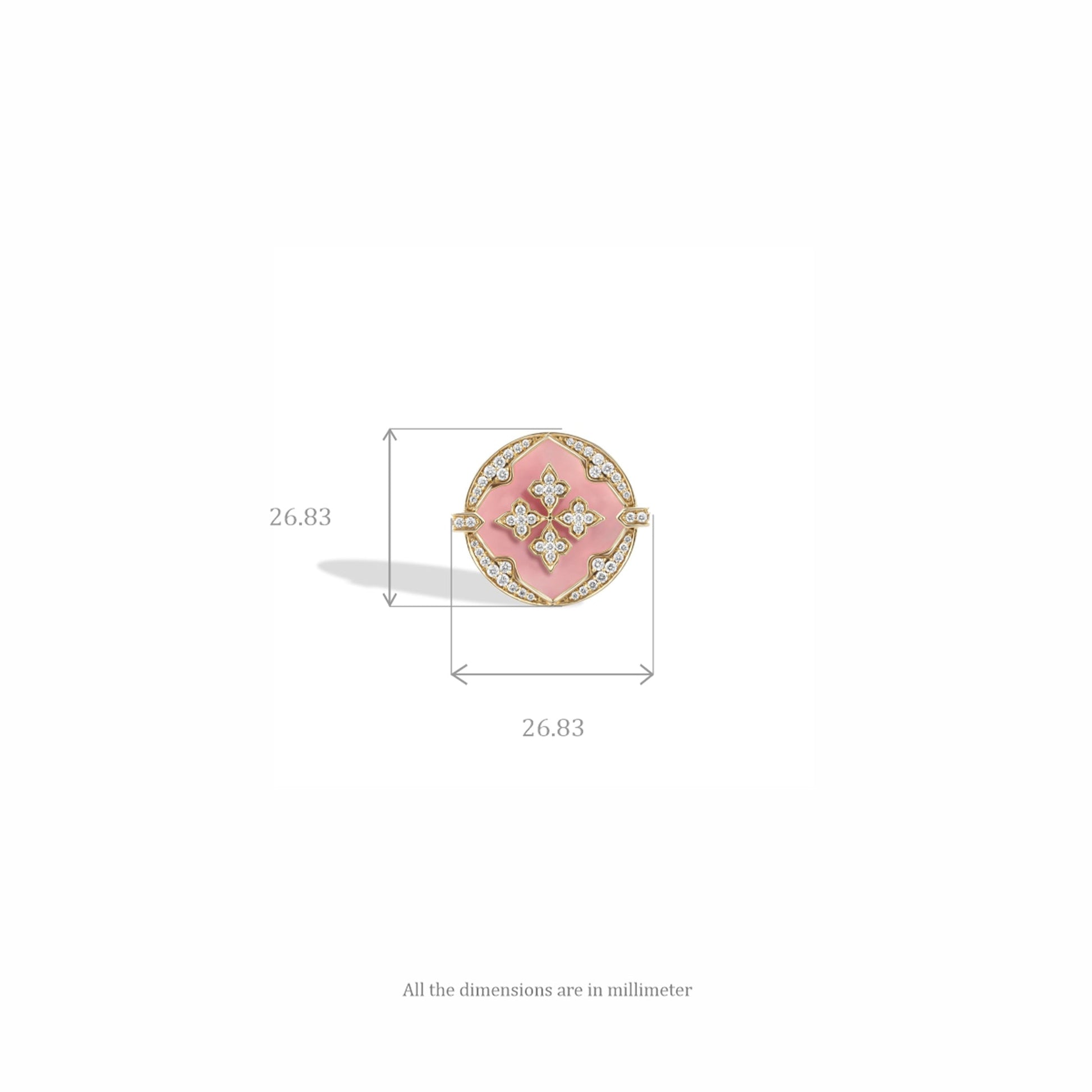 The Ethereal Bloom Ring is a delicate tribute to grace and femininity. Crafted in 18K gold, it features a soft Pink Opal medallion at its heart, encircled by natural diamonds that shimmer like morning dew. Inspired by the quiet magic of a flower in bloom, this ring captures the essence of beauty that radiates from within.