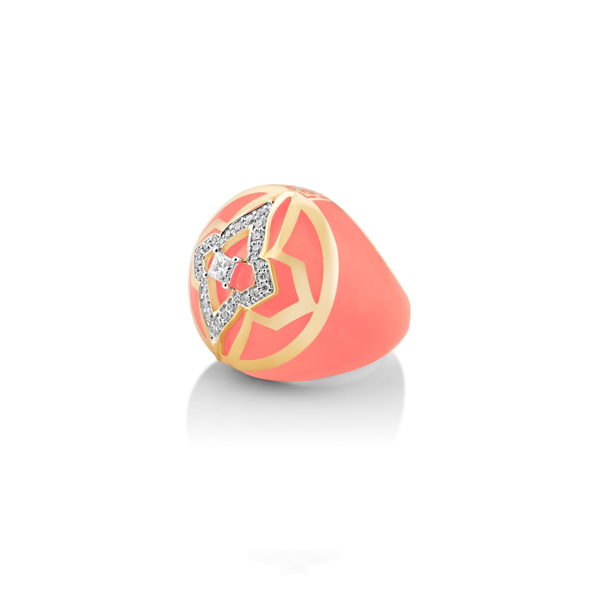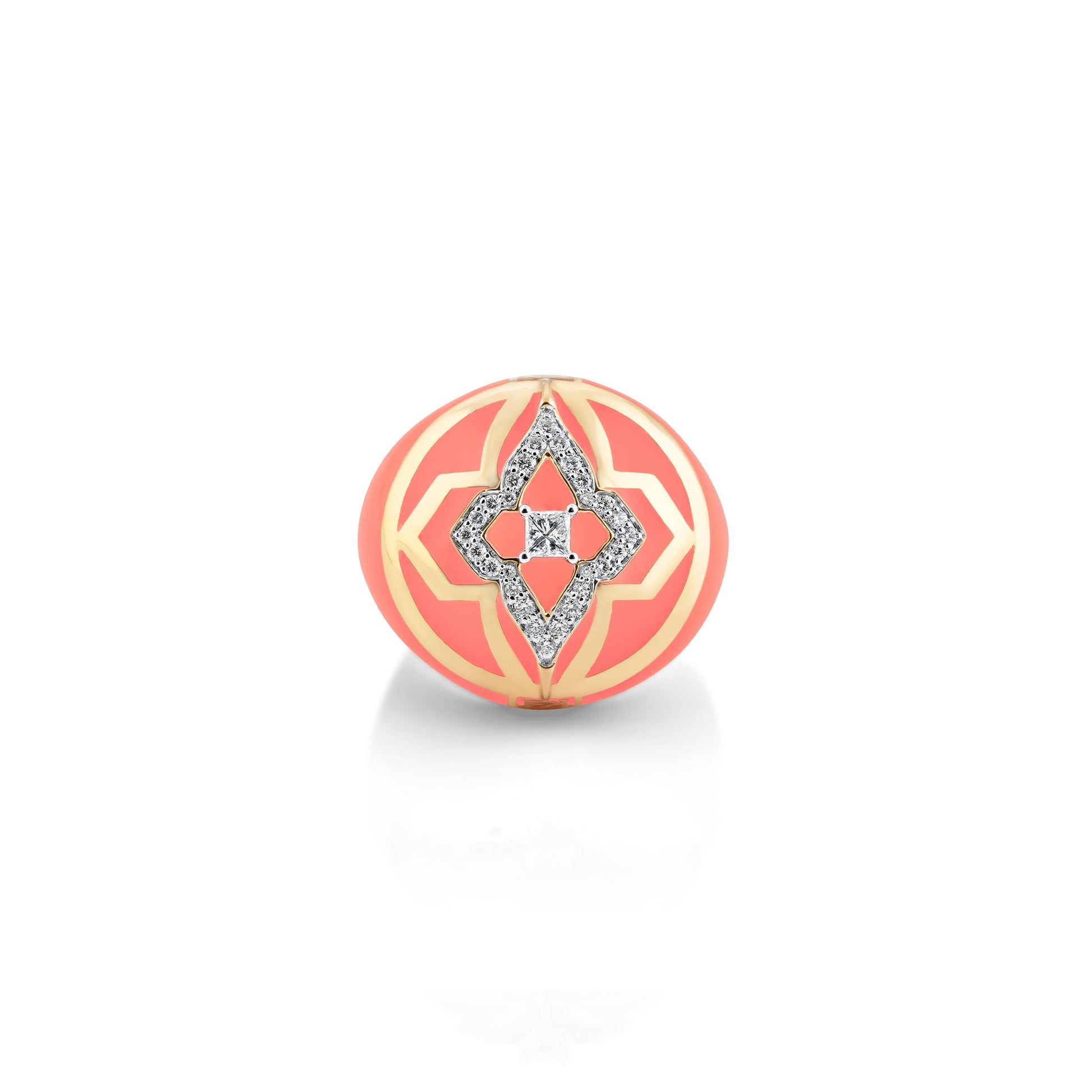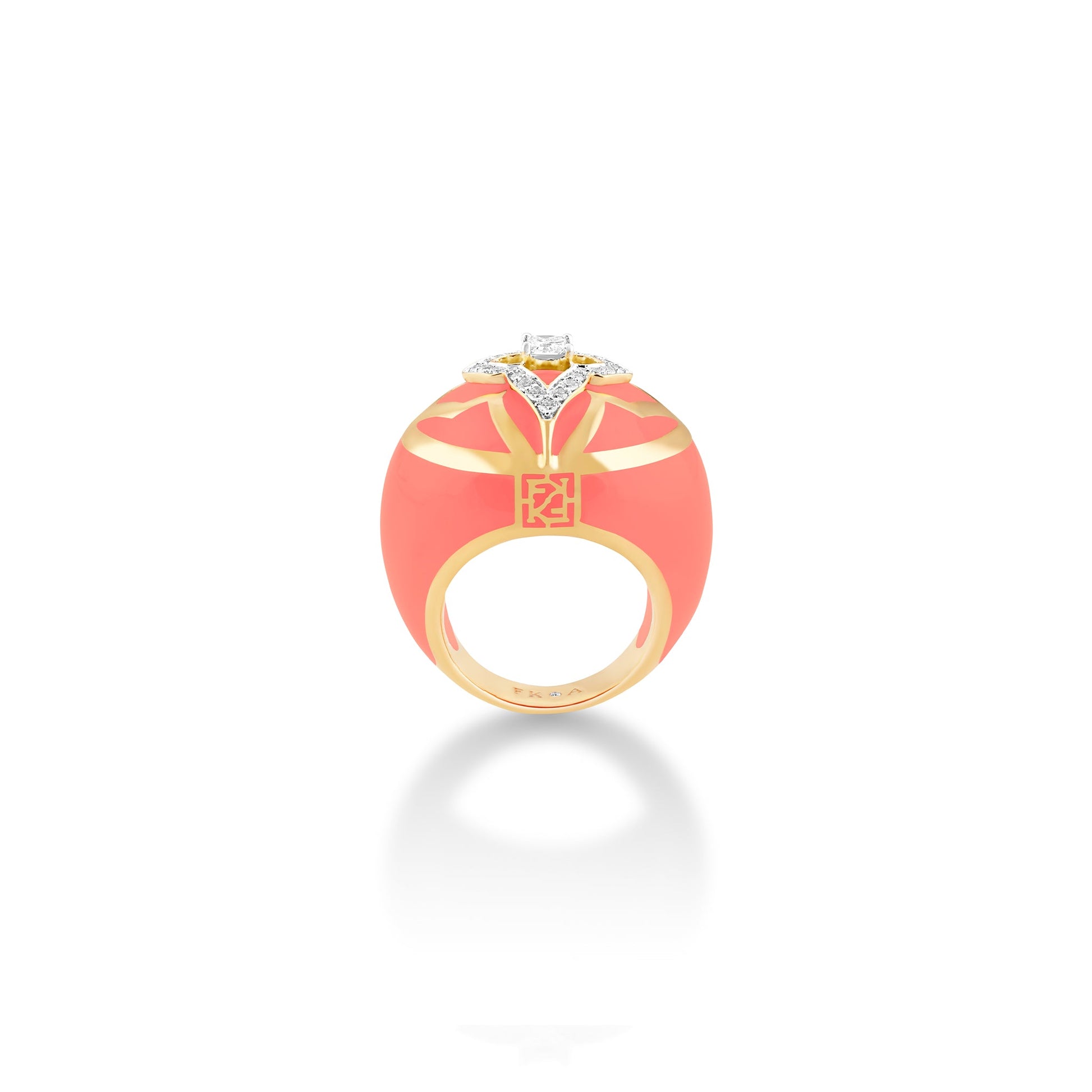 The Florence Globetrotter ring mirrors the warm coral hues that paint the city, allowing you to carry Florence's charm wherever you go. Crafted in 18kt gold, natural diamonds and ceramic this ring is an impeccable style statement for the worldly refined traveller.
