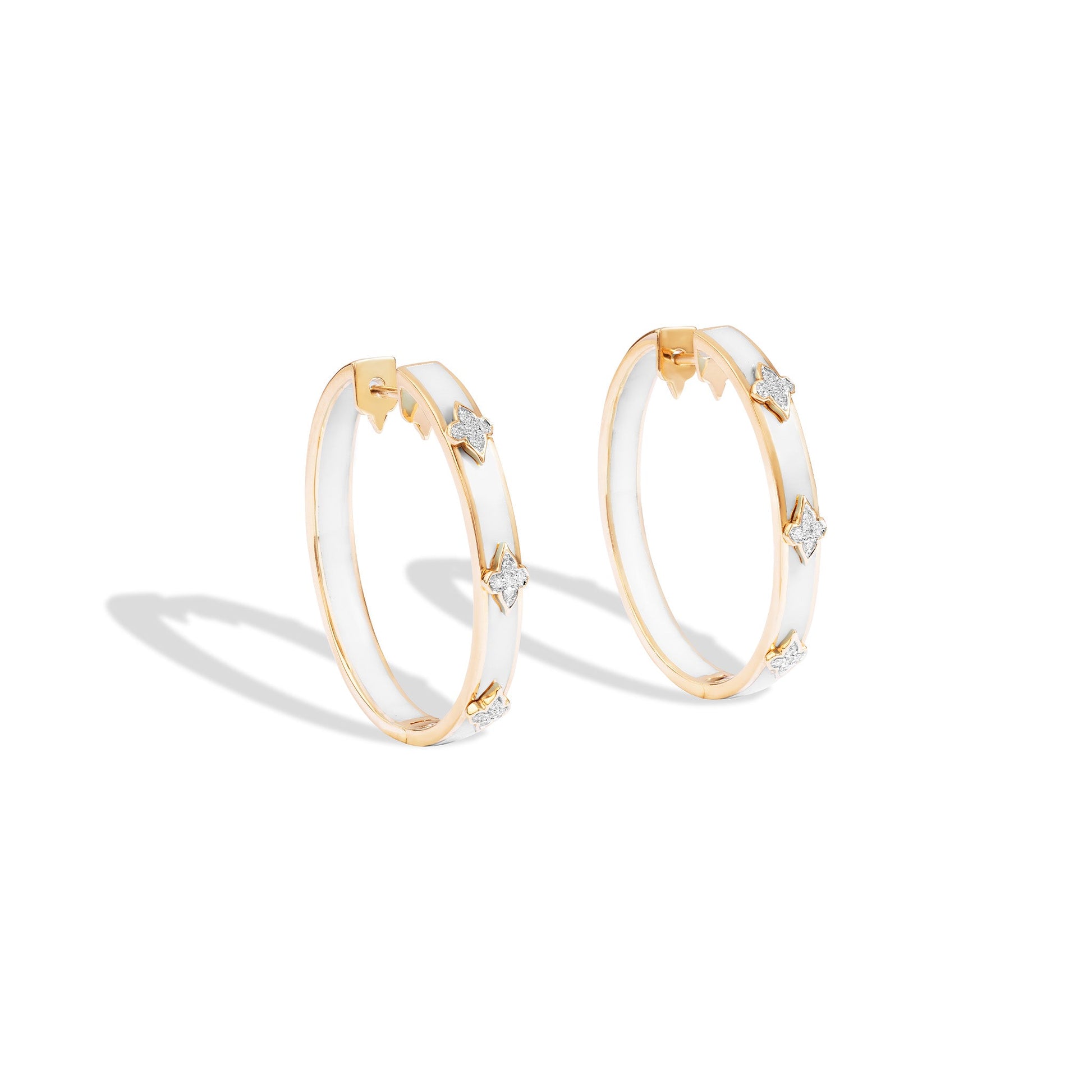 Inspired by the serene snow-capped mountains of Gstaad that stand tall with its slopes pure white and exquisite, these Gstaad Nomad Hoop Earrings embody the spirit of the joyful, adventurous traveler. It is masterfully crafted in ceramic, 18 kt gold and studded with natural diamonds.