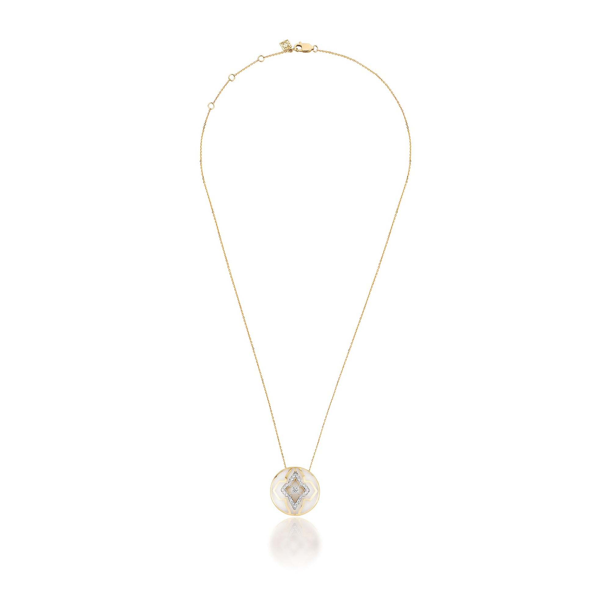 Inspired by the serene snow-capped mountains of Gstaad that stand tall with its slopes pure white and exquisite, this wanderlust pendant is for the traveller who follows her heart and travels to find herself new experiences. It is masterfully crafted in ceramic with svelte lines of 18 kt gold and studded with natural diamonds.