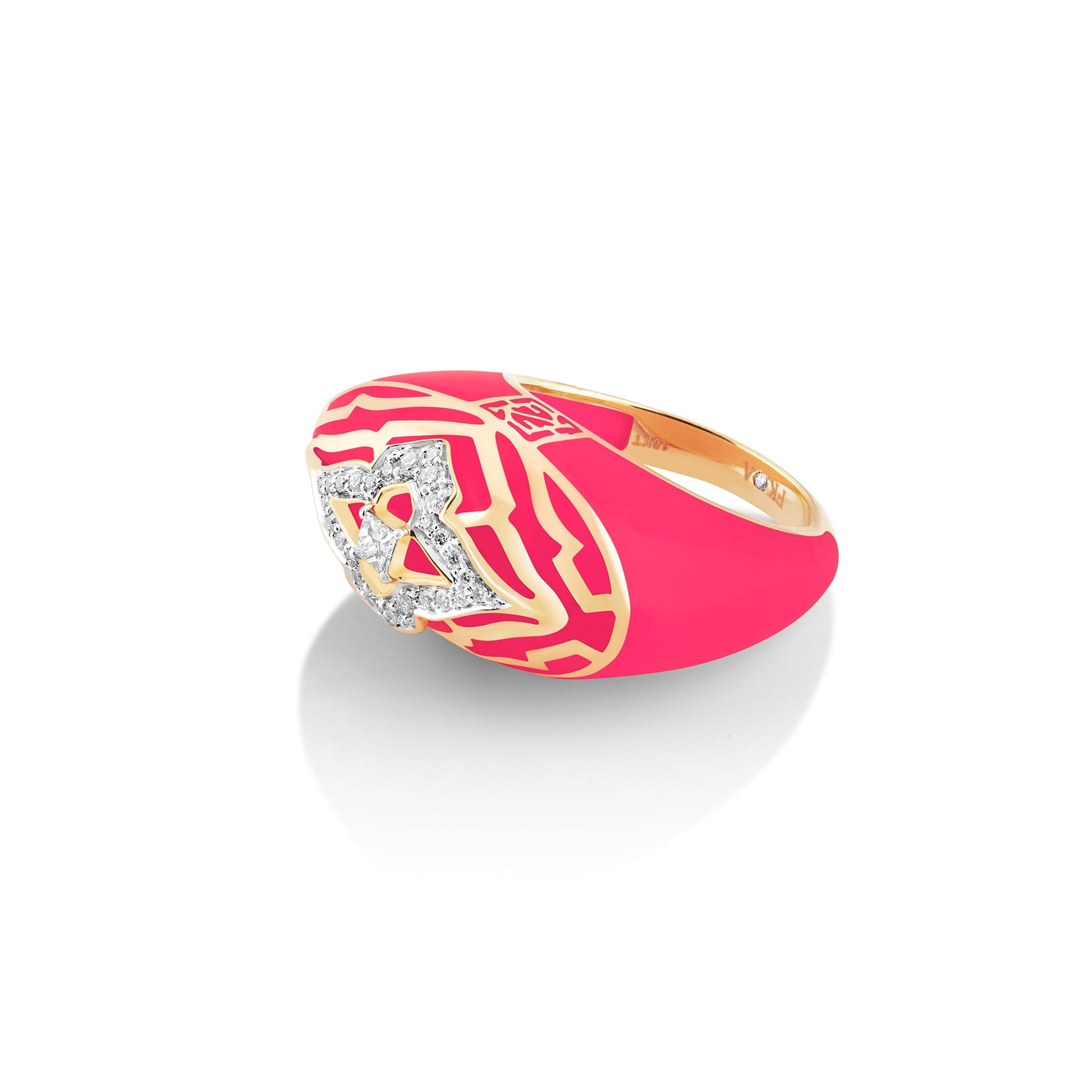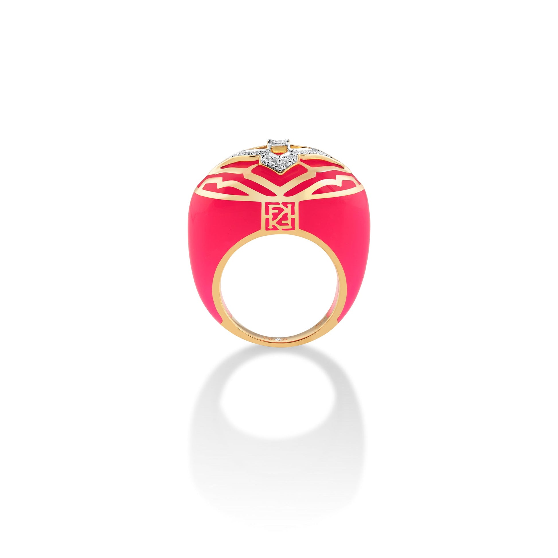 The Jaipur Vivacious ring is inspired from the Pink city of India 'Jaipur' that reflects the city's rich heritage and the romantic allure of its palaces. Crafted in 18kt gold, natural diamonds and ceramic this ring is for the fearless traveller for the cheerful who travels to experience new opportunities along her way.