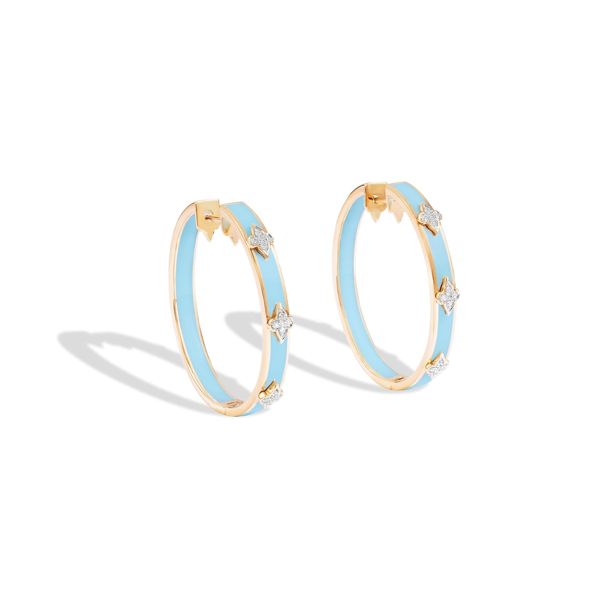 Crafted as an homage to Jodhpur's majestic blue-hued palaces and homes, our Nomad Hoop Earrings embody the spirit of the joyful, adventurous traveler. Skillfully fashioned from ceramic, 18kt gold, and embellished with natural diamonds, these earrings are a celebration of wanderlust and the pursuit of new horizons.