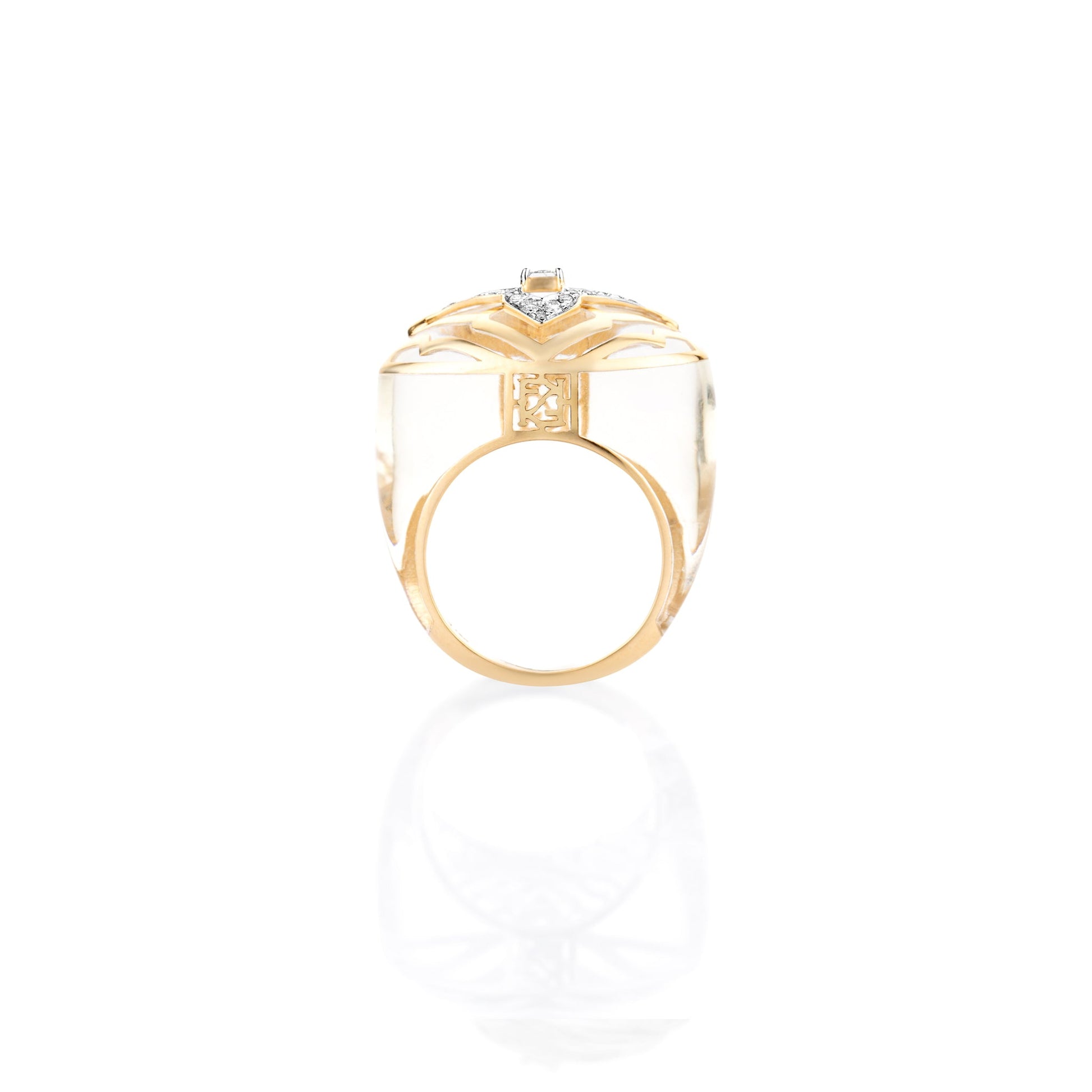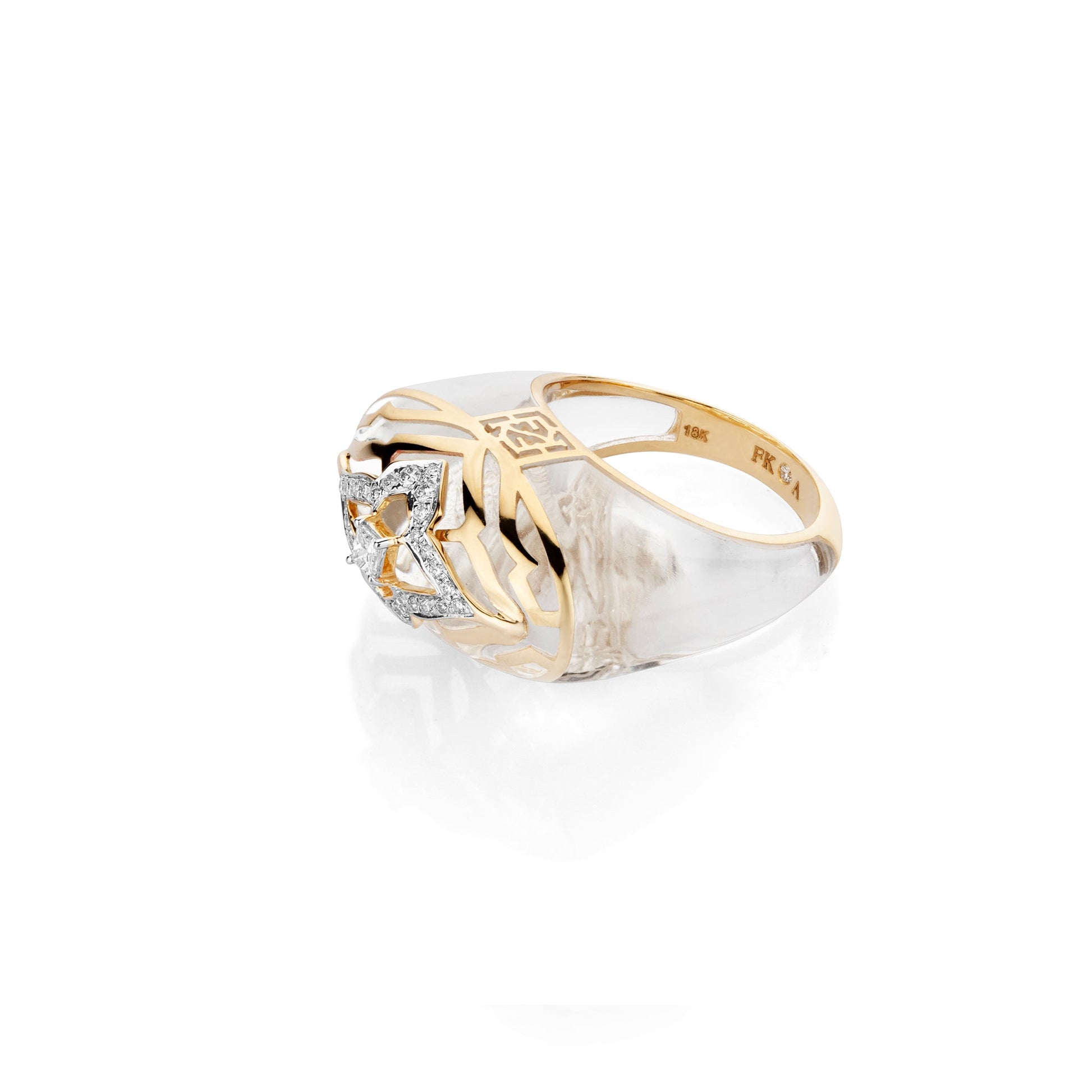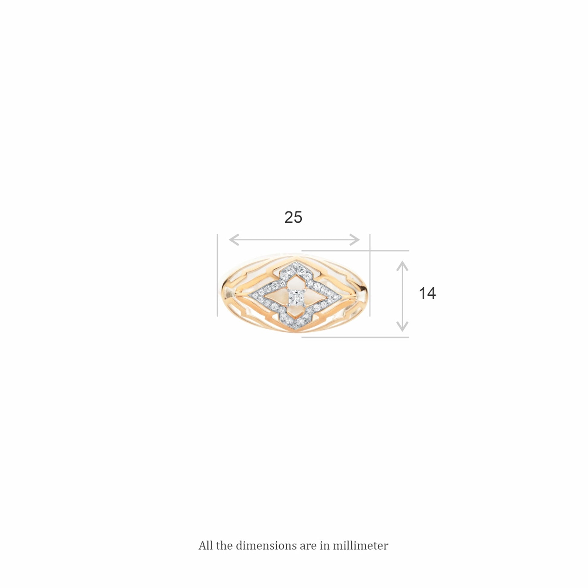 Inspired by the untouched, chaste and translucent heaven on earth Kashmir, this vivacious ring is for the cheerful, free-spirited traveller who travels to experience new opportunities along her way. It is masterfully crafted in ceramic with svelte lines of 18 kt gold and studded with natural diamonds.