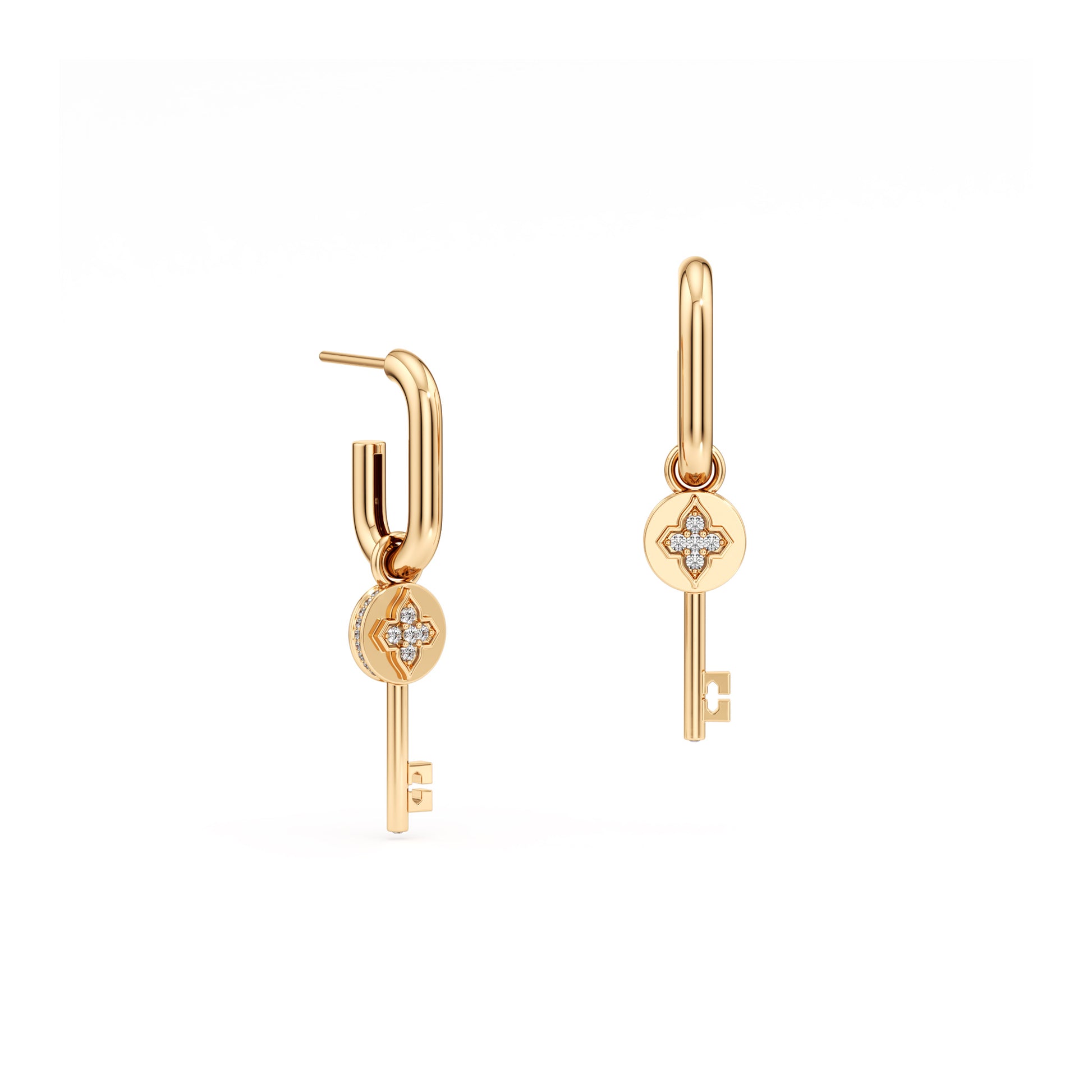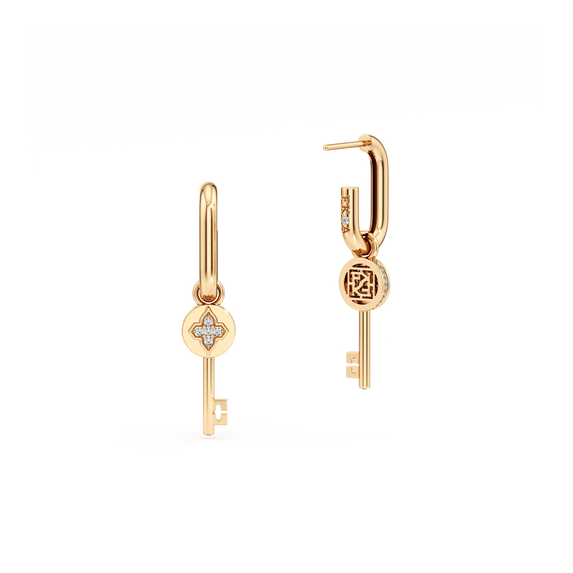 Symbols of destiny and determination, the Key to Fortune Earrings are crafted in 18kt gold and natural diamonds. Refined and radiant, they whisper of doors yet to open and opportunities waiting in the wings — a celebration of fortune found within.