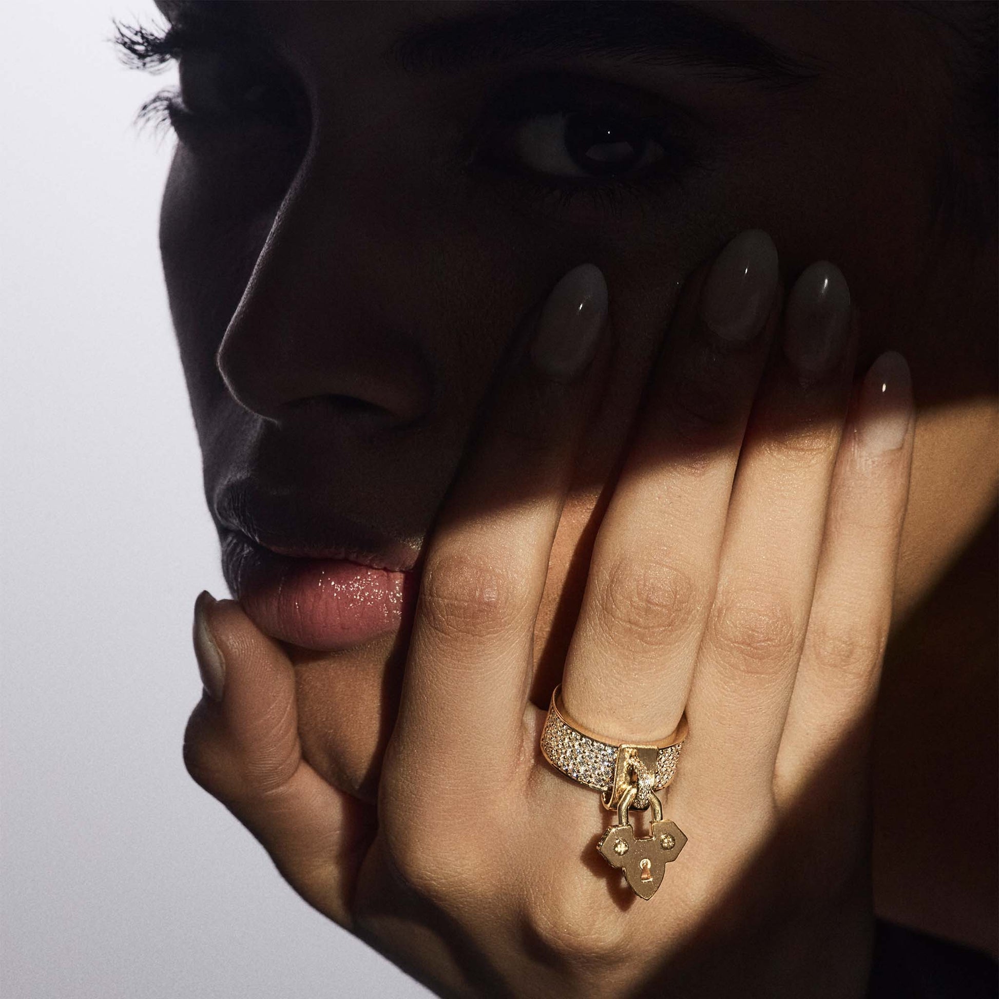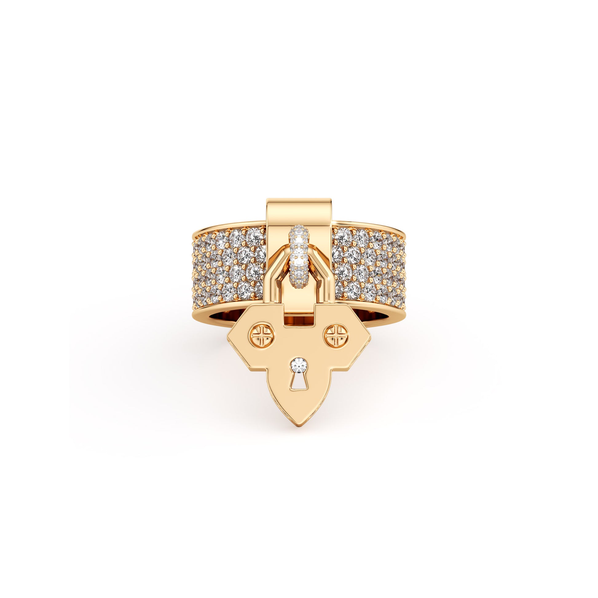 A promise sculpted in gold, the Lock of Love Ring embodies affection sealed in brilliance. Encrusted with natural diamonds, it’s a symbol of devotion that needs no key — because true love is never locked, only cherished.
