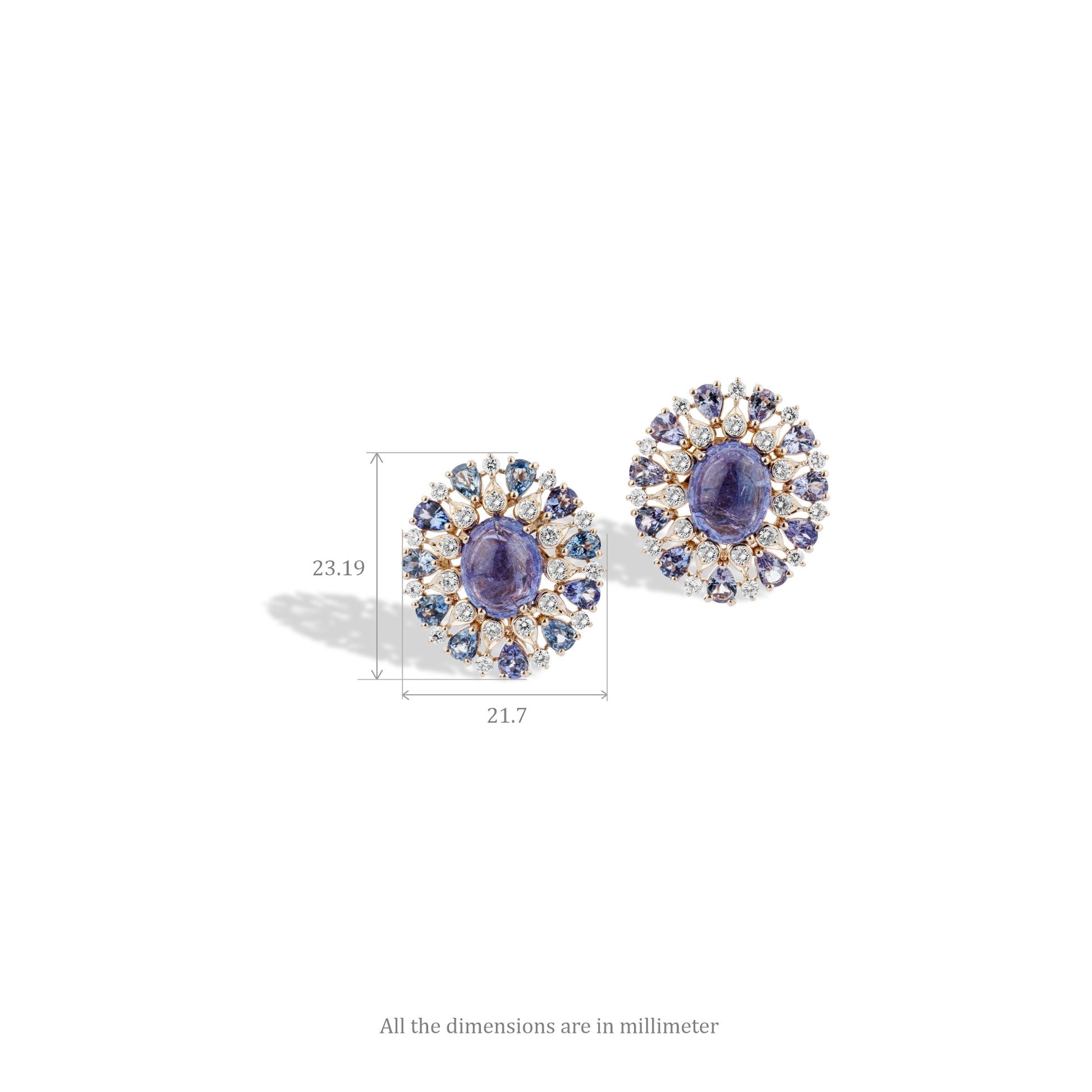 The Midnight Aurora Earrings capture the quiet poetry of the night sky — where starlight dances across shades of deep violet and tanzanite. Diamonds glimmer softly like distant constellations, their radiance flowing through every curve of the design. Crafted in 18KT gold, these earrings celebrate strength, serenity, and timeless allure — a dream held in the glow of midnight.