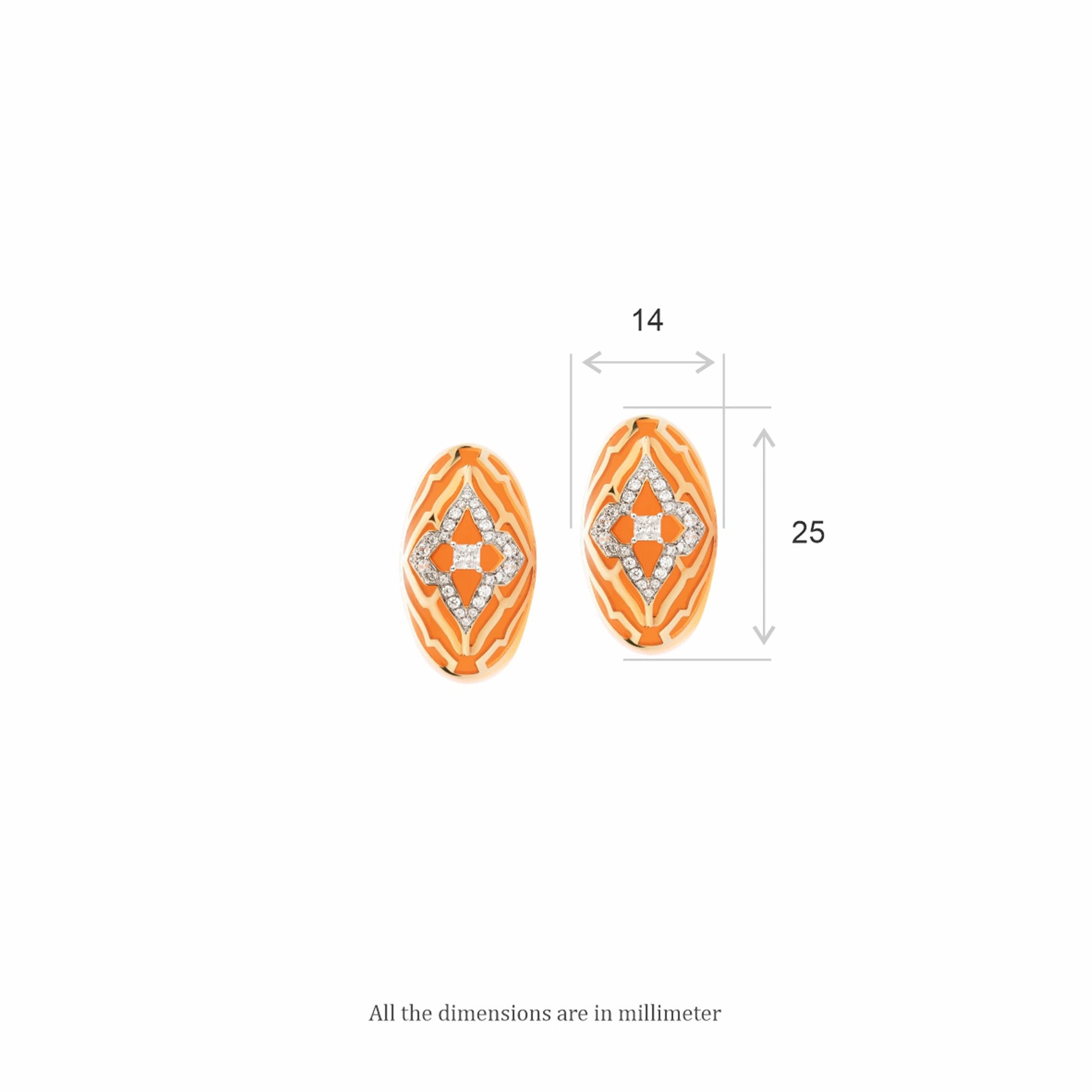 Inspired by bright orange golden sunsets of Mumbai and the buzzing energy of the city of dreams, these day dreamer earrings are for the traveller who manifests her day dreams into existence. It is masterfully crafted in ceramic with svelte lines of 18 kt gold and studded with natural diamonds.
