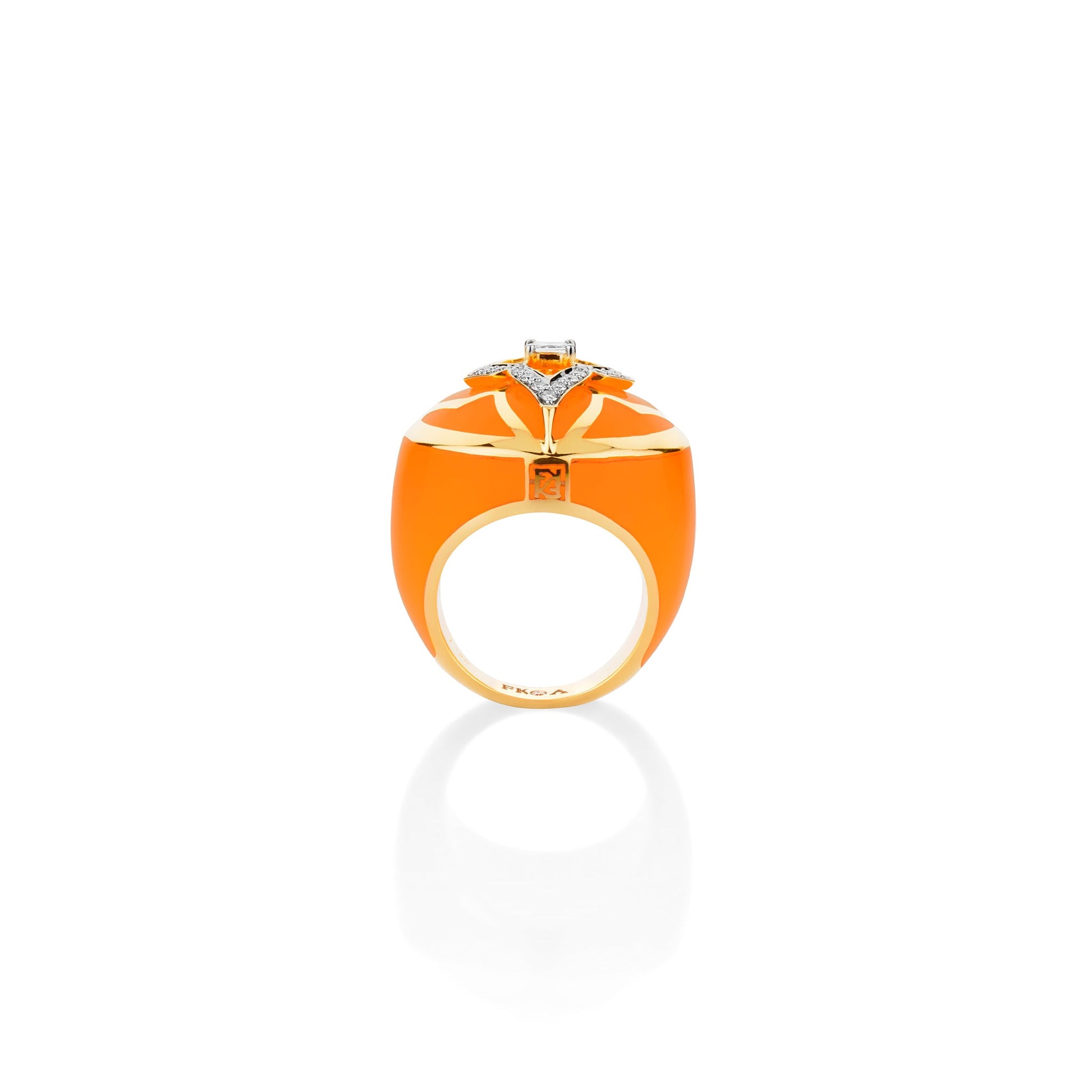 Inspired by bright orange golden sunsets of Mumbai and the buzzing energy of the city of dreams, this globetrotter ring is for the worldly refined traveller who makes a suave statement by being herself. It is masterfully crafted in ceramic with svelte lines of 18 kt gold and studded with natural diamonds.