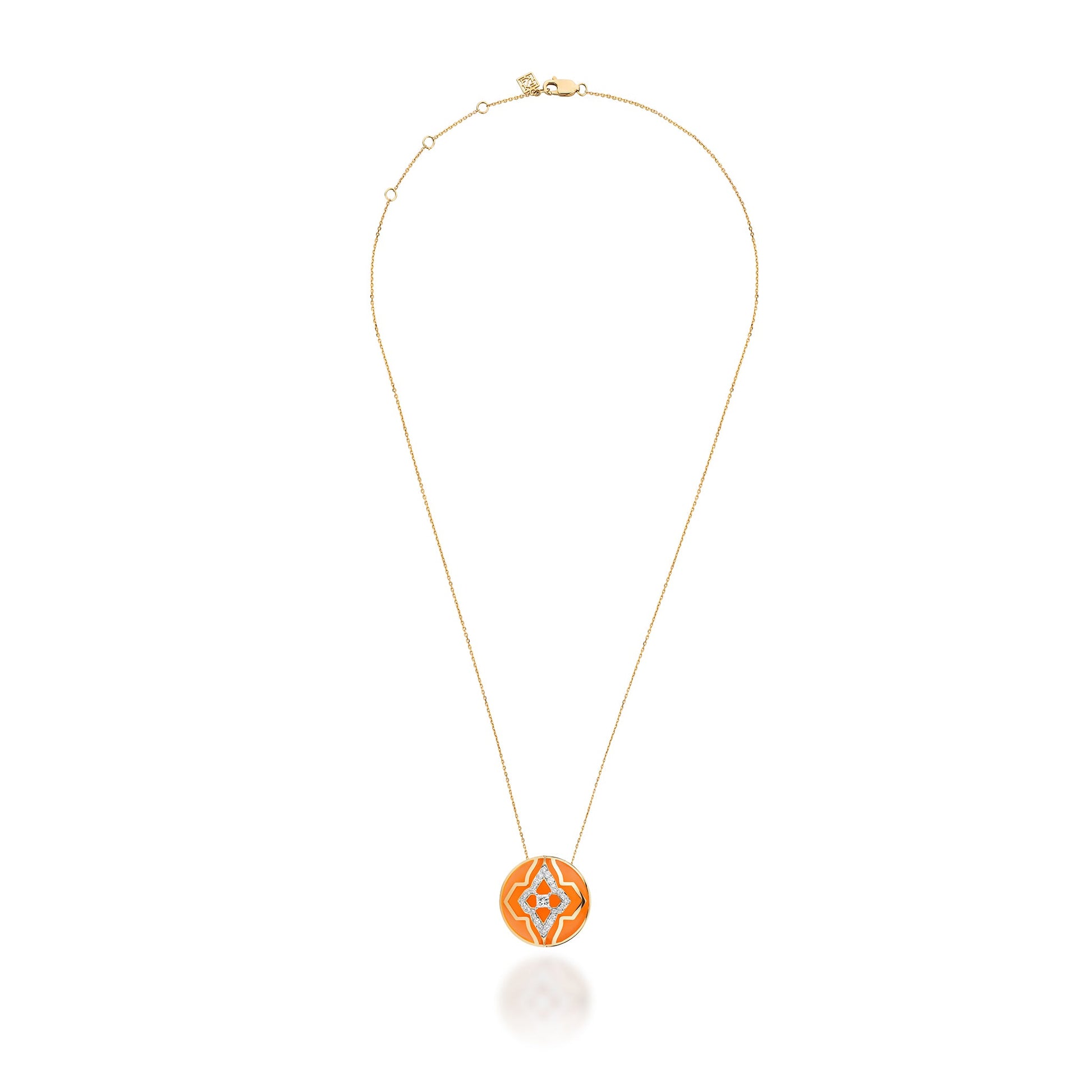 Inspired by bright orange golden sunsets of Mumbai and the buzzing energy of the city of dreams, this wanderlust pendant is for the traveller who follows her heart and travels to find herself new experiences. It is masterfully crafted in ceramic with svelte lines of 18 kt gold and studded with natural diamonds.