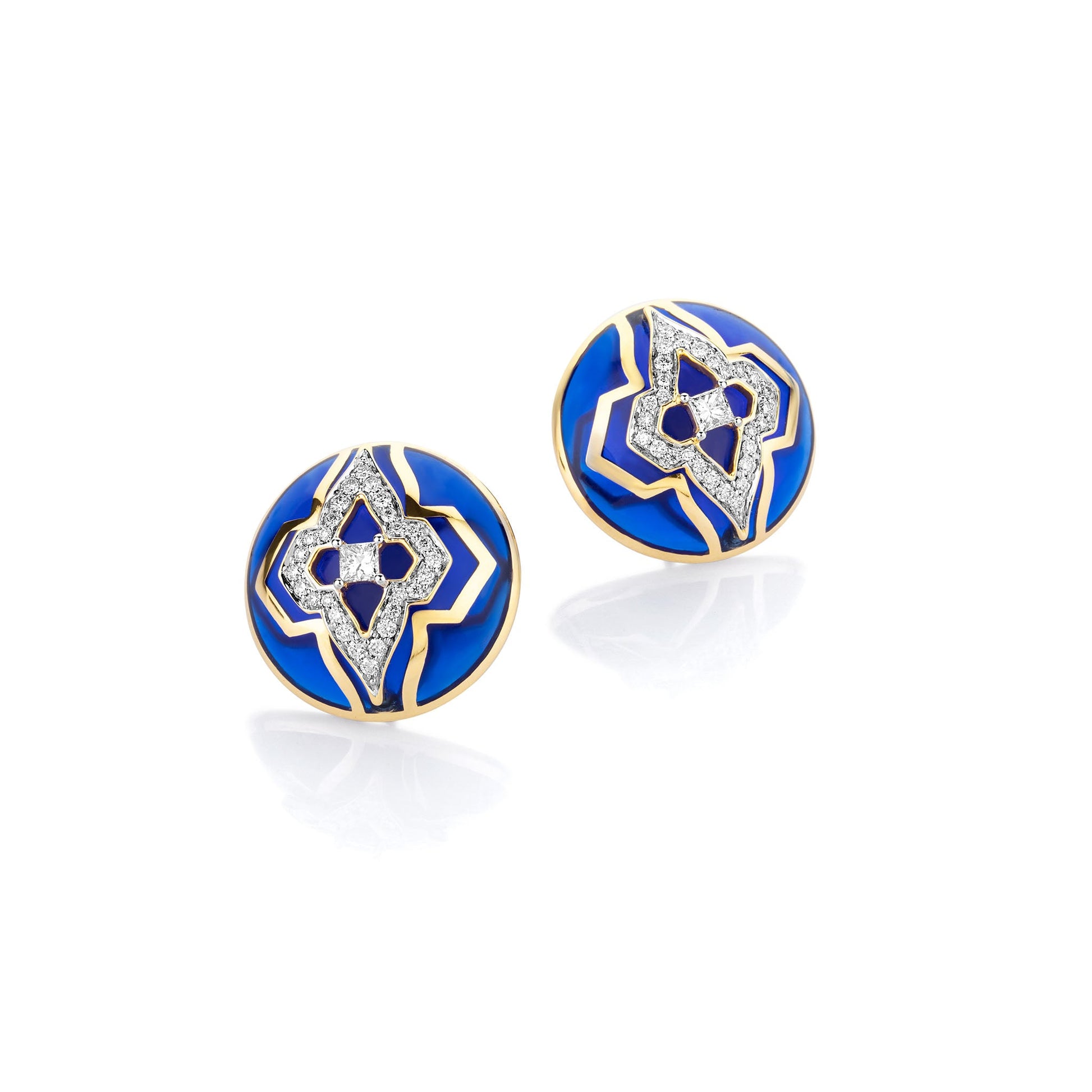 Inspired by the mystical deep blue of the Aegean sea and the color blue embedded in the architecture of Mykonos, these audacious earrings are for the fearless traveller who follows the world map just as finely as her inner map. It is masterfully crafted in ceramic with svelte lines of 18 kt gold and studded with natural diamonds.