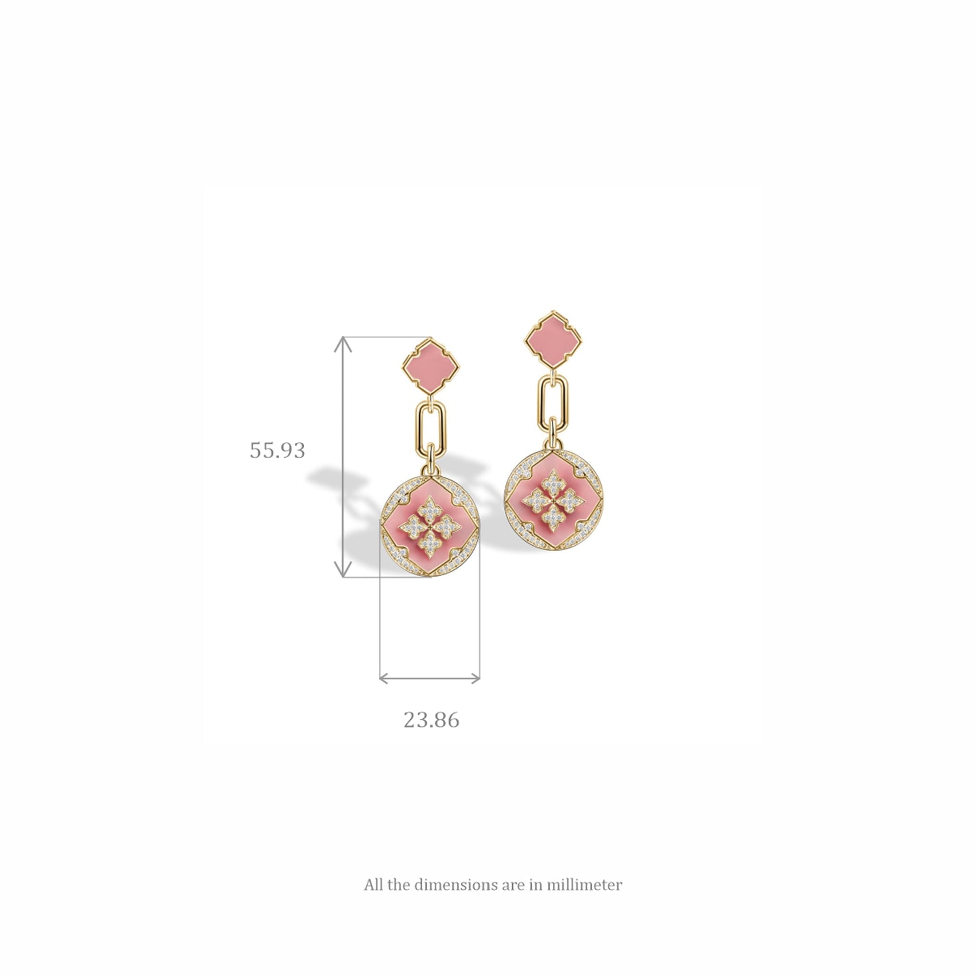 The Ros' Swing Earrings are a graceful dance of elegance and charm. Crafted in 18K gold, set with the soft glow of Pink Opal, and accented with natural diamonds, these earrings swing with effortless grace. Inspired by the delicate beauty of a blooming rose, they embody timeless femininity, combining sophistication and subtle allure for a truly unforgettable piece.