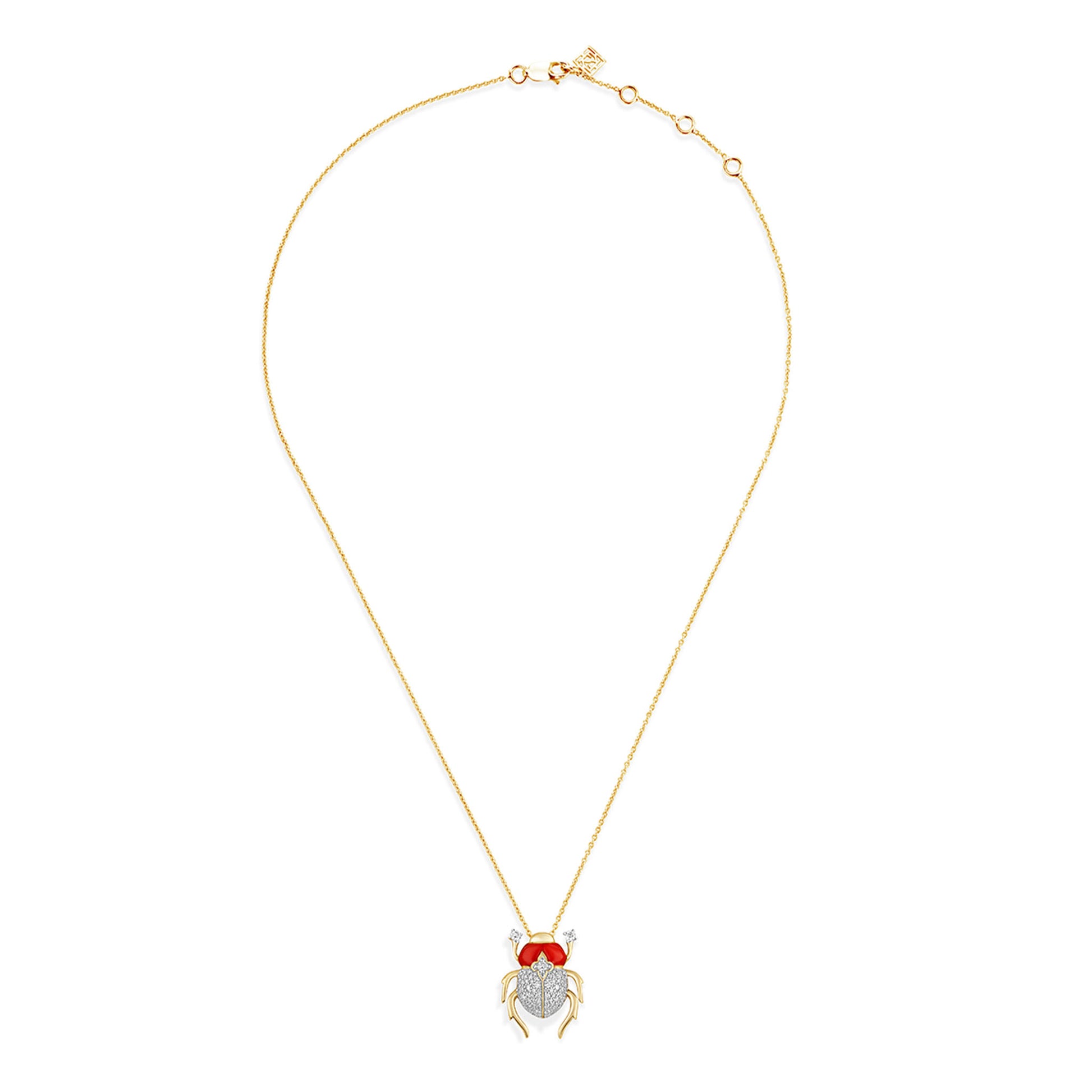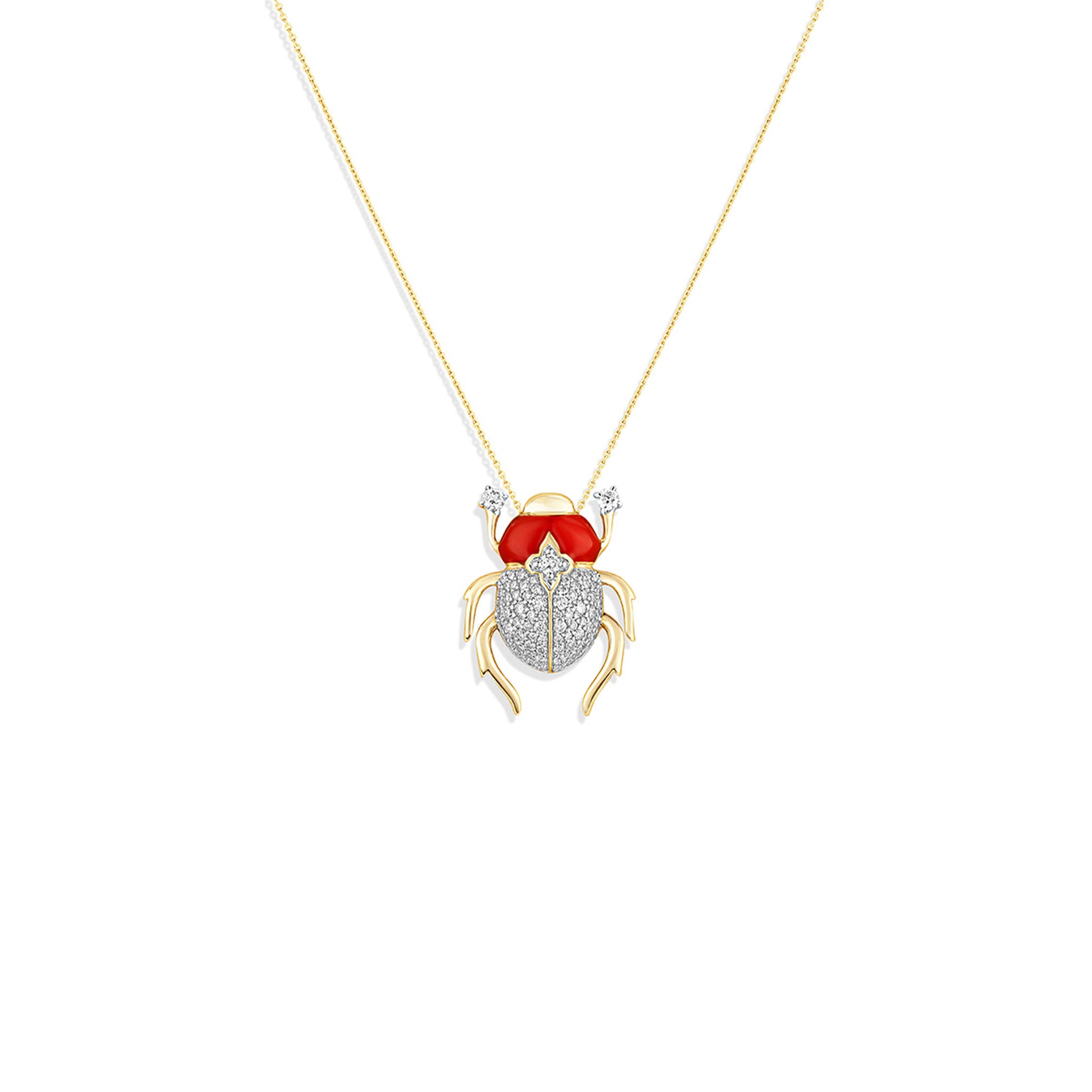 Bold yet refined, the Scarab Guardian Pendant is sculpted for the soul that protects and rises, again and again. Designed in red ceramic with a strong silhouette of 18kt gold and framed in glimmering diamonds, it echoes the sacred strength of the scarab beetle — a timeless protector, a keeper of change. Carry it as a fierce charm of resilience and radiant renewal.