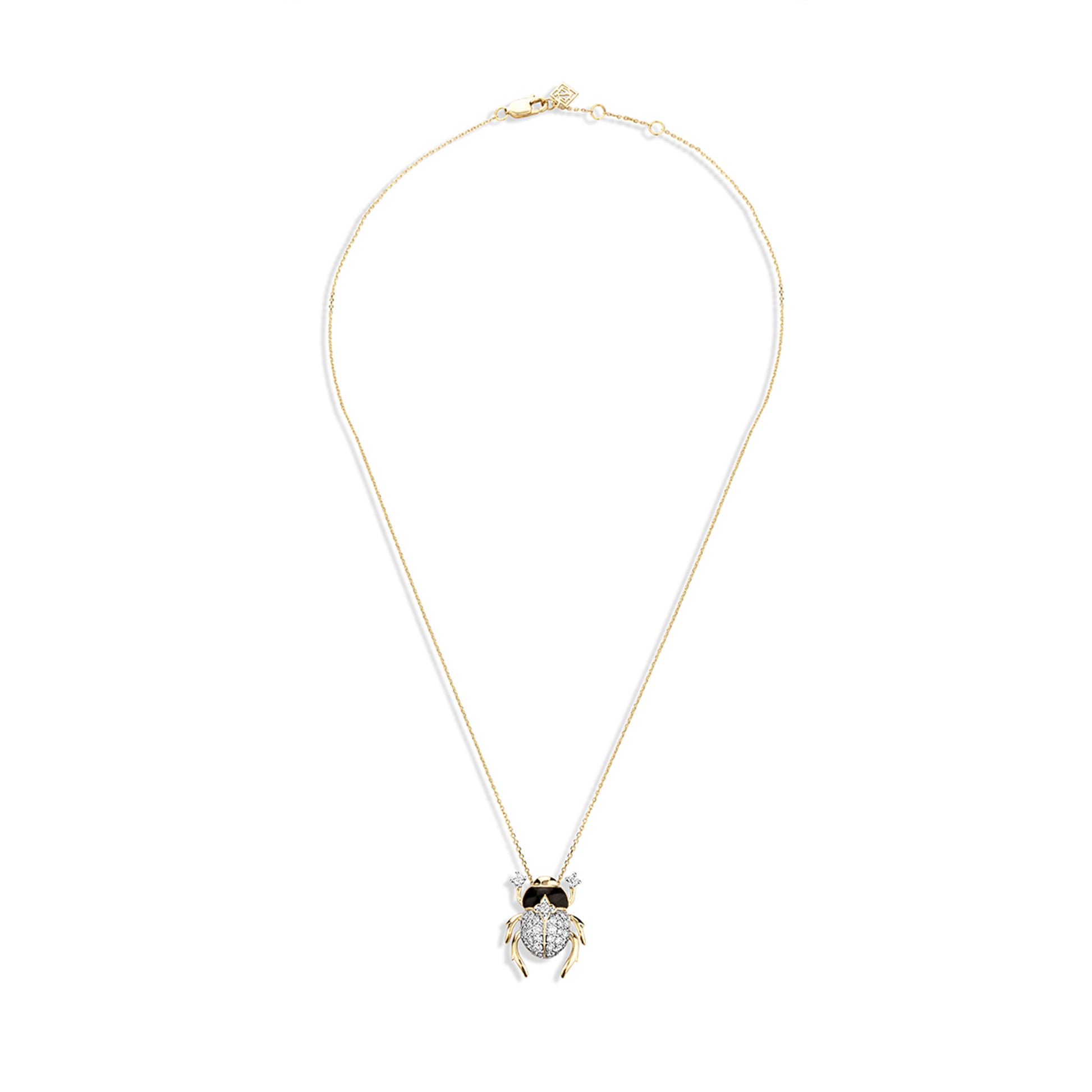 Luminous and celestial, the Scarab Starborn Pendant is for the dreamer guided by clarity and inner light. With a body of radiant natural diamonds and a whisper of black ceramic, this piece captures the magic of illumination emerging from stillness. Accented with 18kt gold, it draws on the scarab’s ancient symbolism — rebirth, divine protection, and transformation. Like a constellation worn close to the heart, it is a quiet beacon of brilliance and soul.