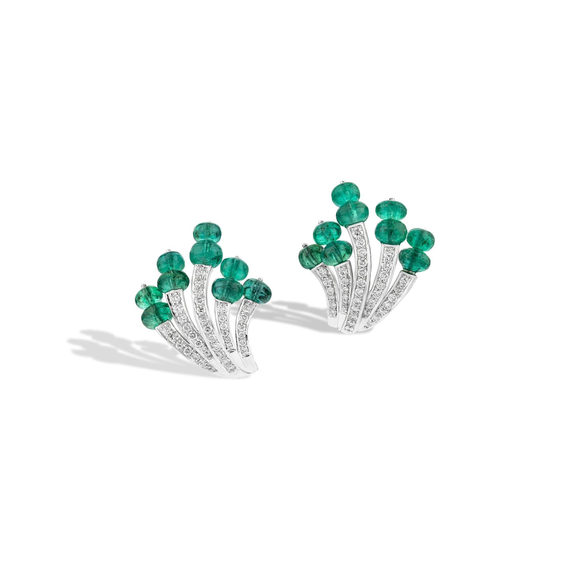 The Sylvan Dew Earrings capture the delicate beauty of wildflowers touched by morning light. Crafted in 18KT gold, they feature vivid emerald beads that bloom like fresh buds, set against graceful diamond-studded arcs that shimmer with natural radiance. Poetic and refined, these earrings evoke the essence of renewal and serenity — a timeless celebration of nature’s quiet elegance and enduring grace.