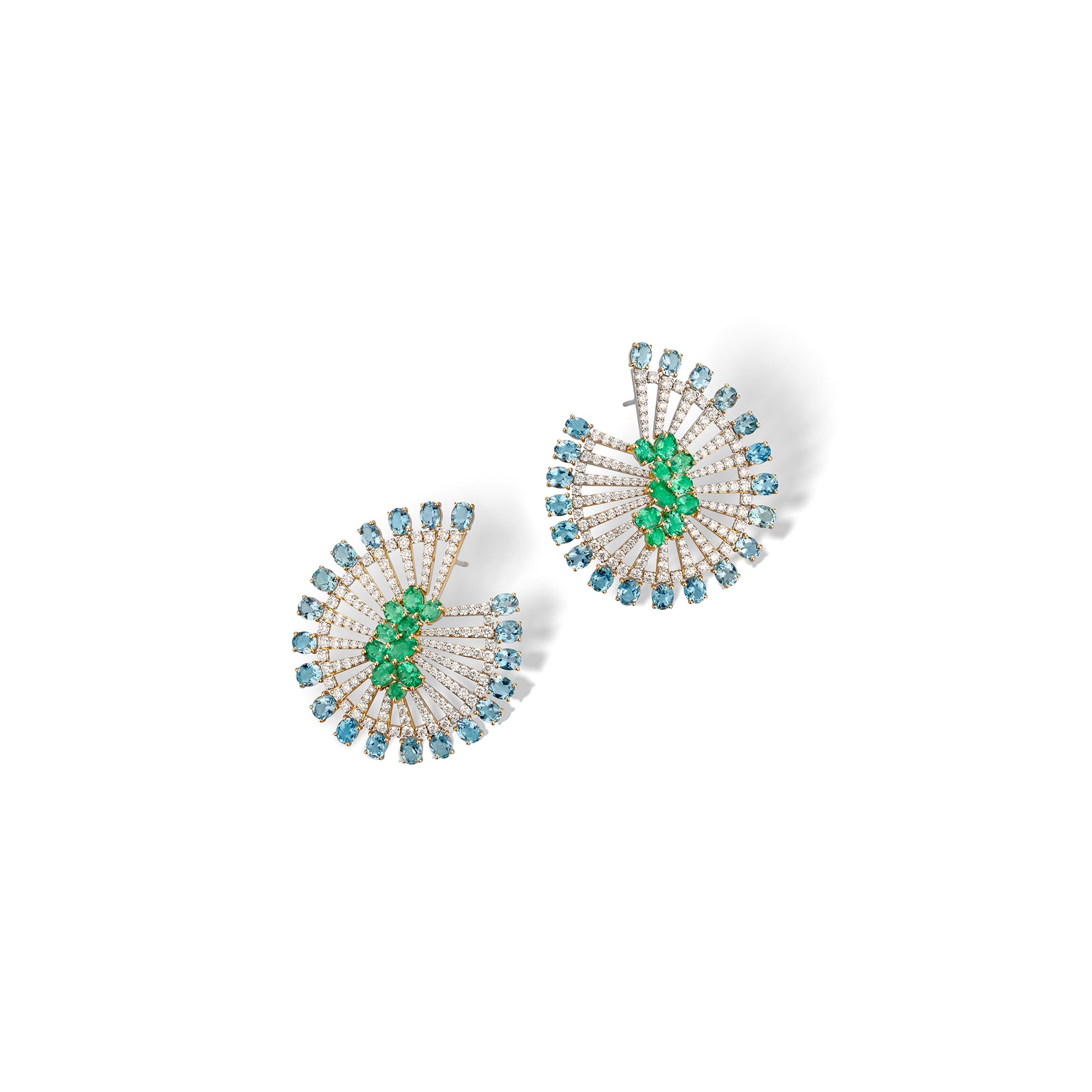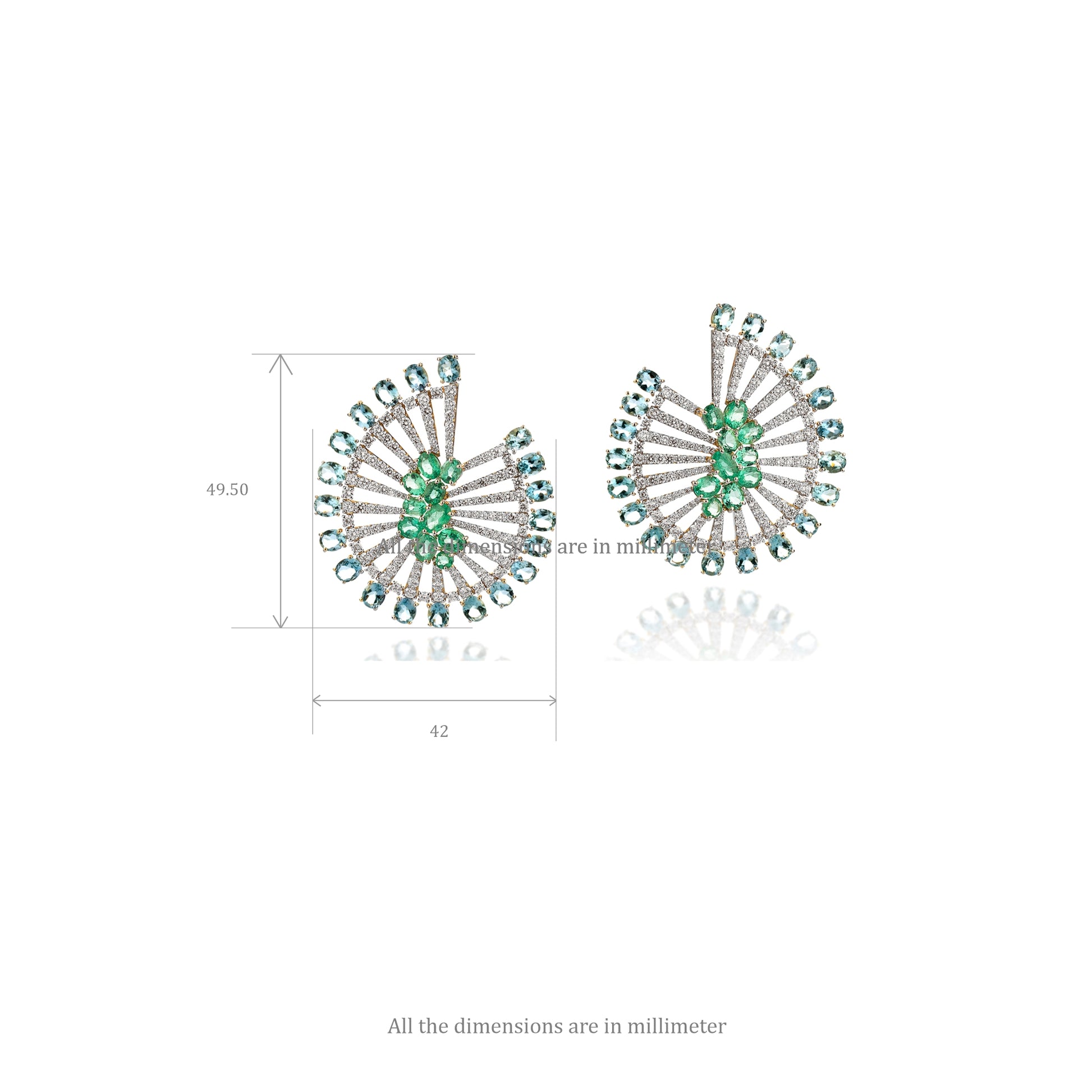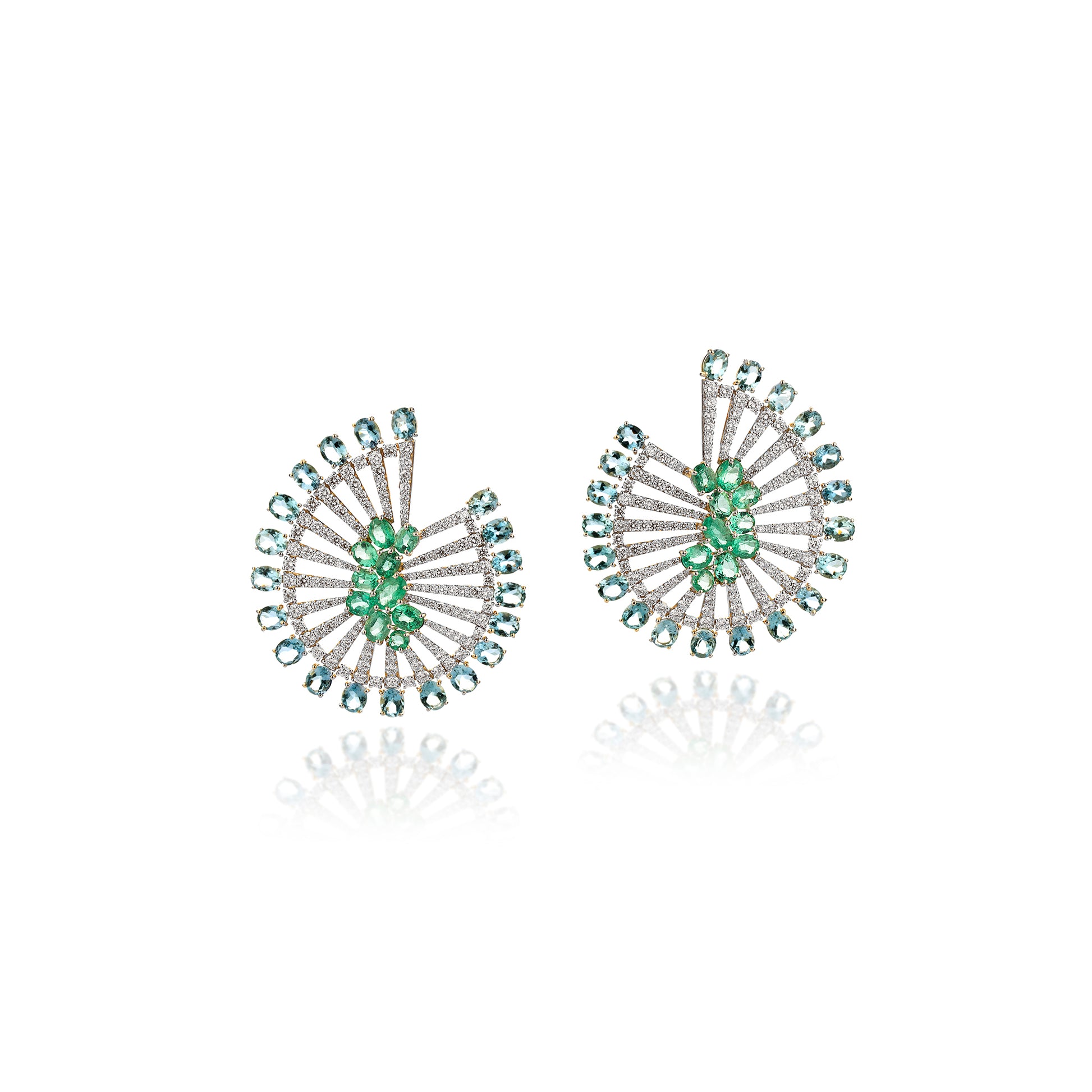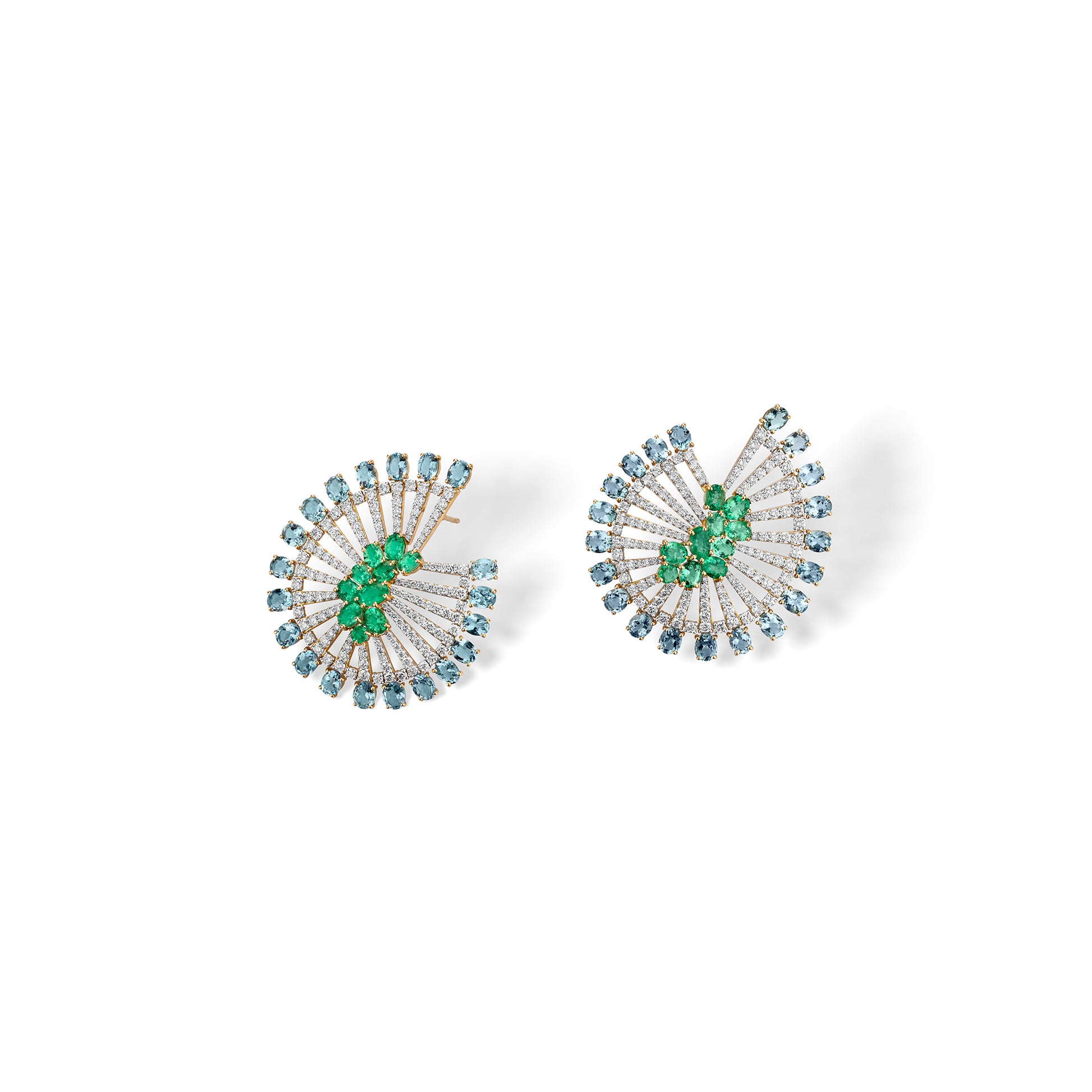 The Emerald Glow Earrings capture the harmony of nature’s elements in a refined, contemporary design. Crafted in 18kt gold, they feature vivid emeralds, serene aquamarines, and brilliant natural diamonds — each element reflecting earth, water, and sky in perfect balance. Elegant and versatile, these earrings embody timeless sophistication and the quiet power of nature’s beauty, making them an exquisite addition to any collection.