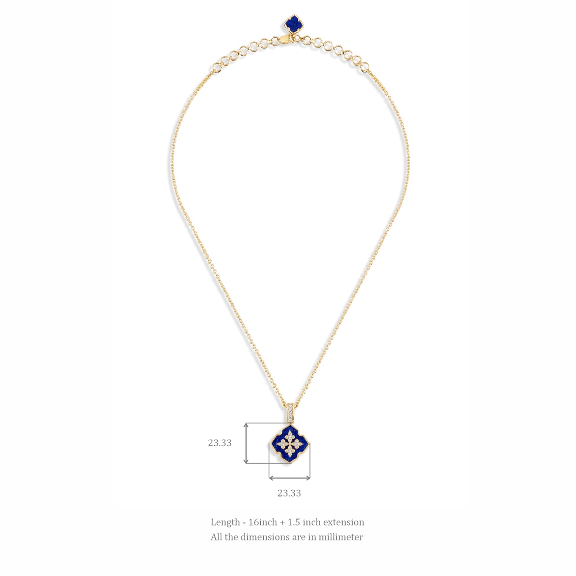 Inspired by the calming energy of water and crafted with Lapis Lazuli, The Tide’s Touch Pendant symbolizes tranquility and flow. Set in 18K gold, it evokes the soothing rhythm of the ocean’s waves, perfect for the woman who moves through life with grace and ease, embracing the ever-changing tides.