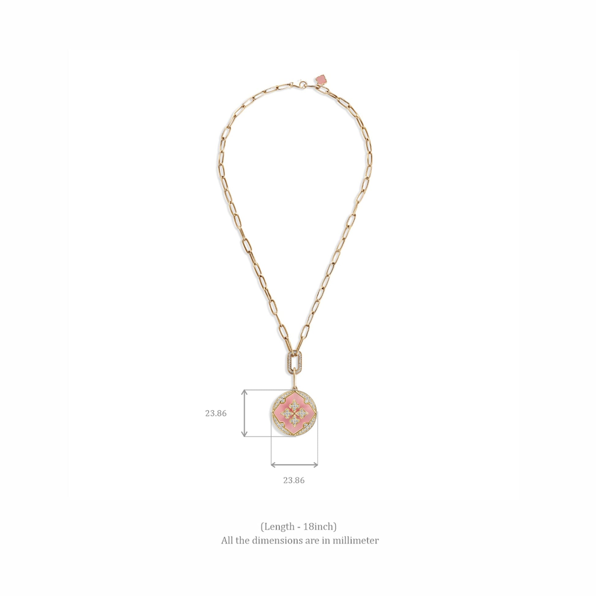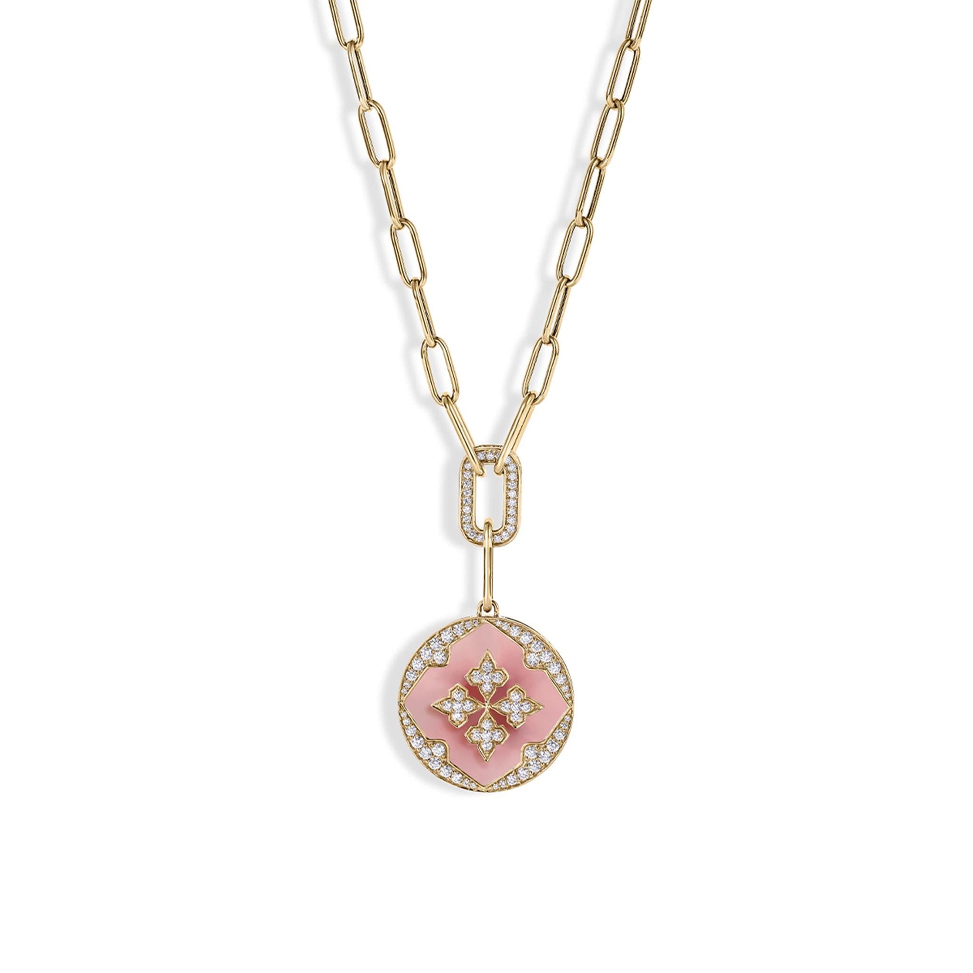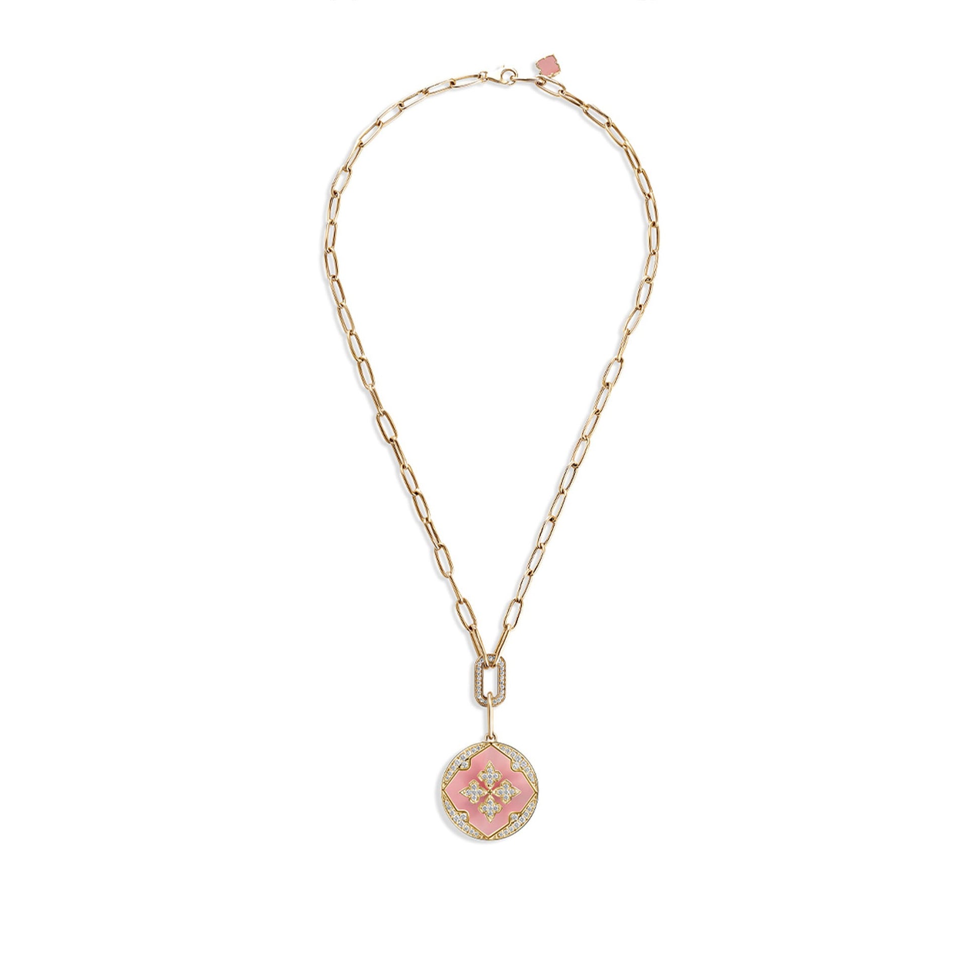 Awash in the soft hues of morning light, the Veil of Dawn Medallion is crafted in 18K gold, featuring Pink Opal at its heart and a halo of natural diamonds. Gentle yet powerful, it embodies the serene beauty of a new beginning.