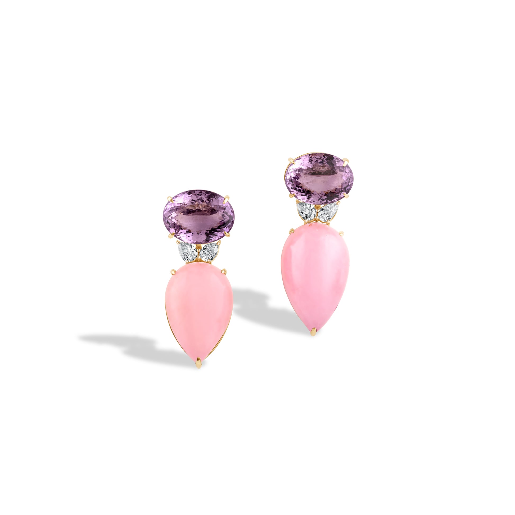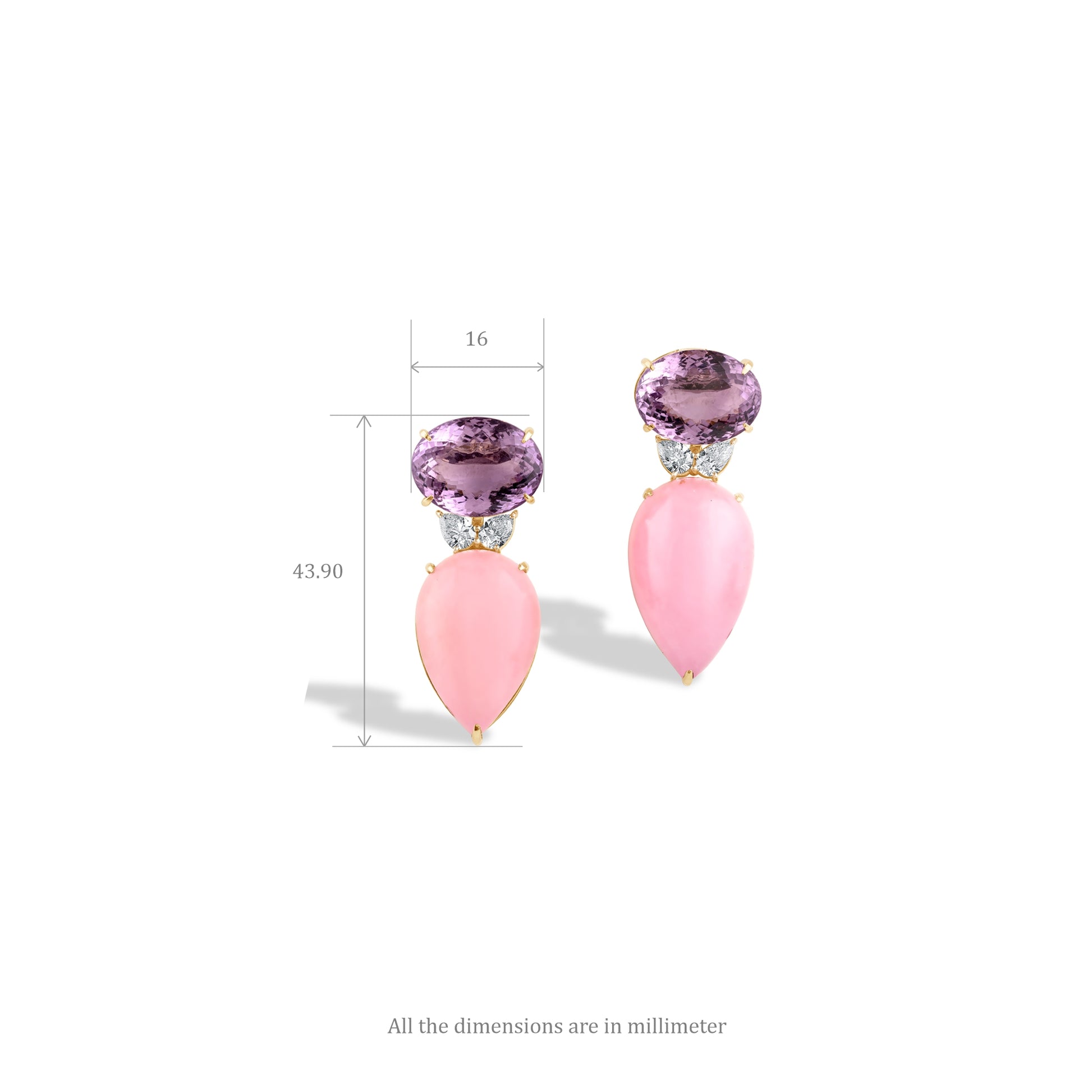 The Whispers in Rose & Lavender Earrings capture the essence of femininity in its most graceful form. The lavender amethyst radiates quiet strength, while the soft pink teardrop morganite reflects tender emotion. Between them, a cluster of natural marquise diamonds sparkles like morning dew — delicate, radiant, and full of life. Crafted in 18KT gold, this piece celebrates the woman who carries softness as her power.