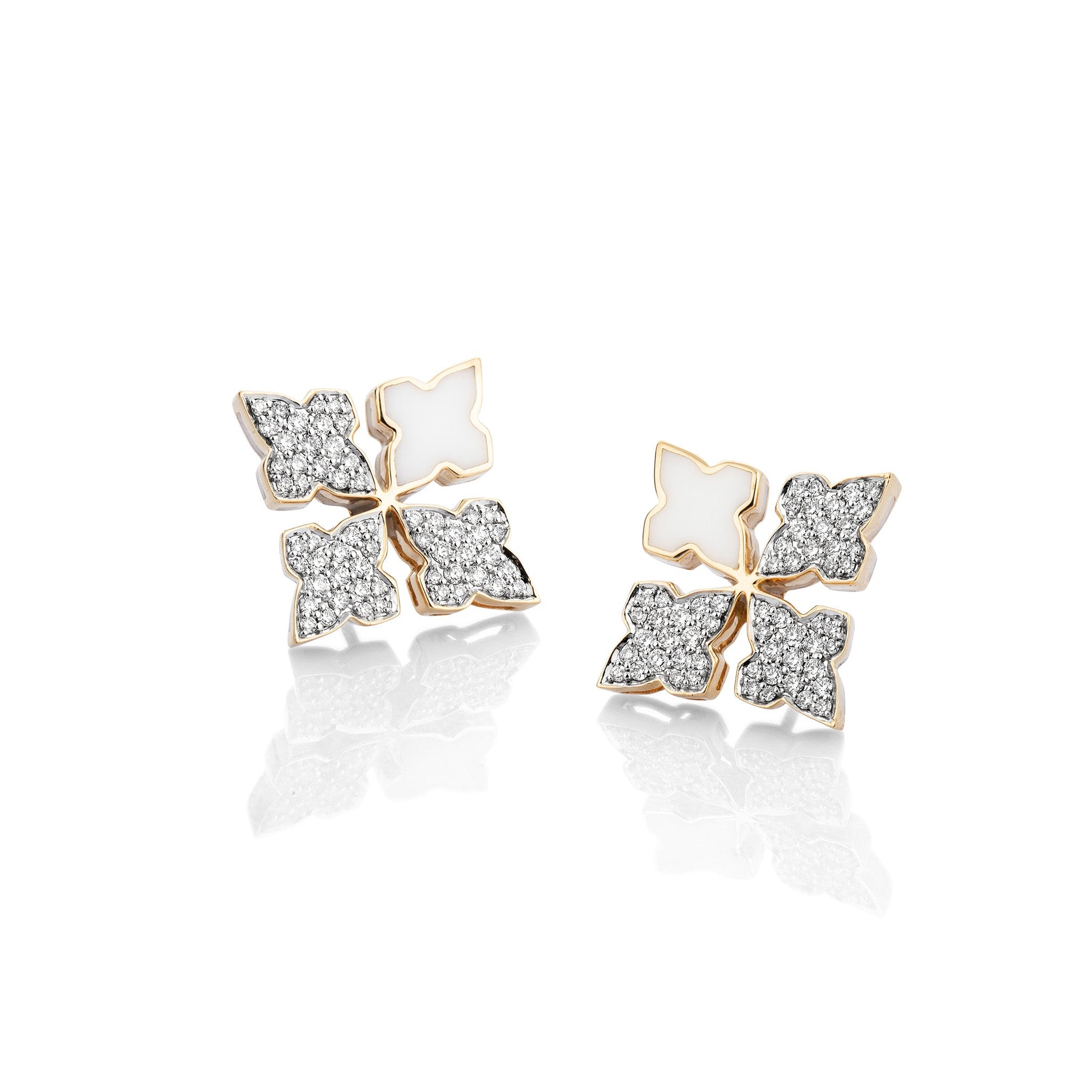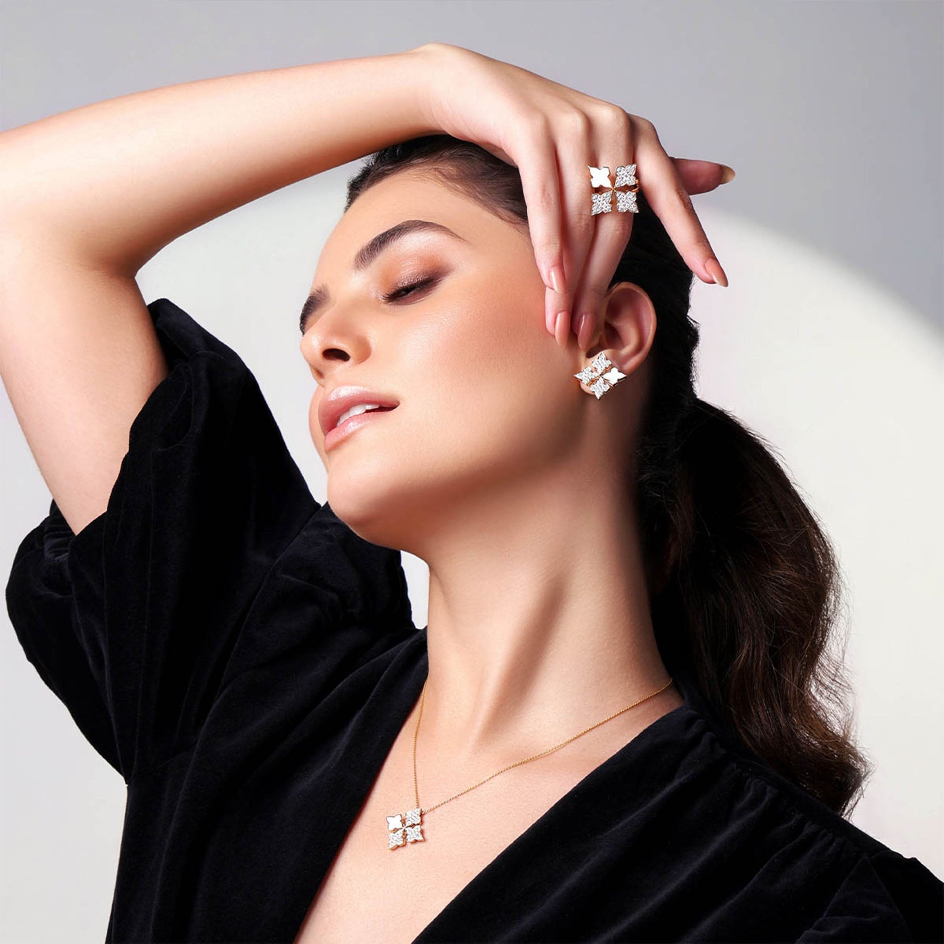 Designed in 18kt gold, brilliant diamonds and white ceramic, adorn this statement Aayat earring and shine as bright as your zest for life for you deserve the best and more.