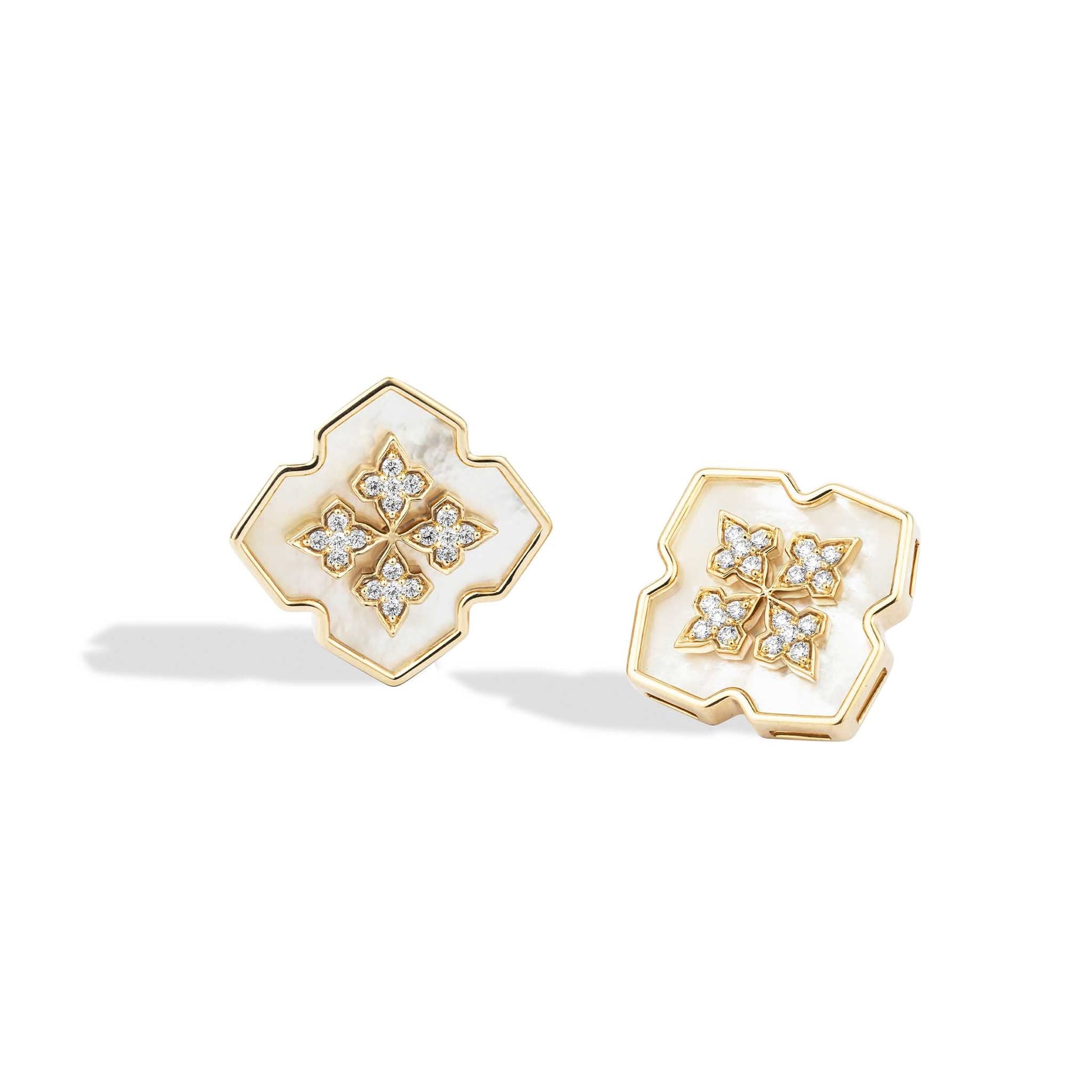 Winds of Grace Earrings capture the lightness and freedom of the breeze, inspired by the purity of Mother of Pearl and the element of air. Crafted in 18K gold and set with natural diamonds, they sway like a gentle breeze—delicate yet powerful, embodying effortless elegance for the woman who moves through life with grace and fluidity.